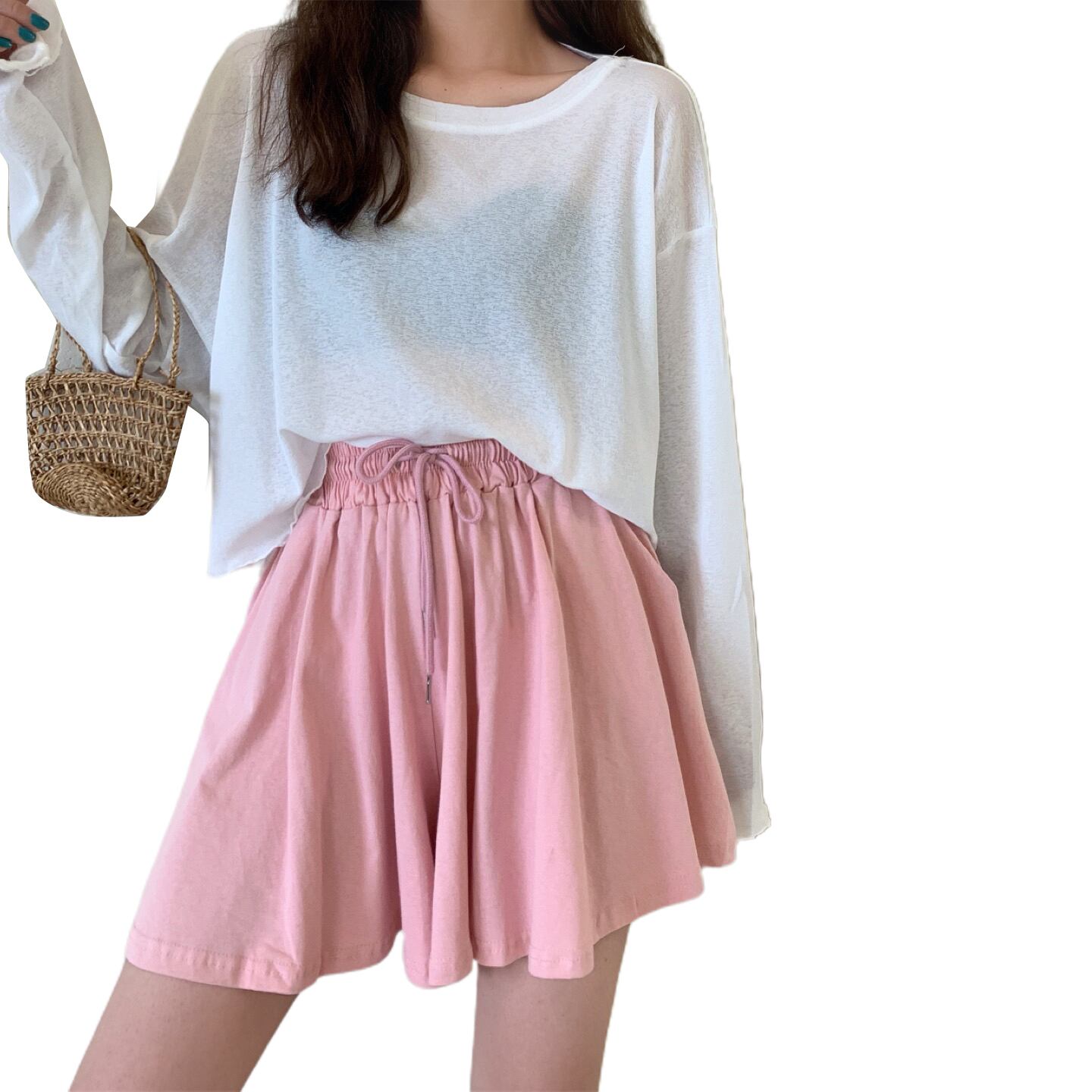夏の新作レディースカジュアルパンツワイドレッグパンツハイウエストドレープレトロショーツスカートルーズストレートレッグパンツ学生パンツ 1号婦人2126793793