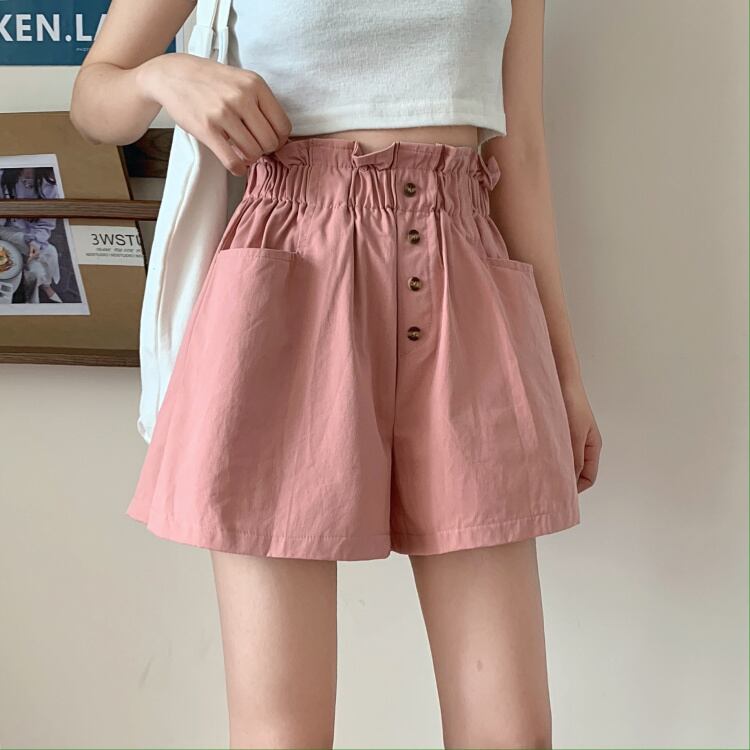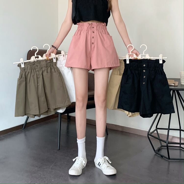 2020年夏新バージョンのハイウエストワイドレッグパンツルーズカジュアルパンツ学生オーバーオールネットレッドパンツショーツ女性 1号婦人42444871352