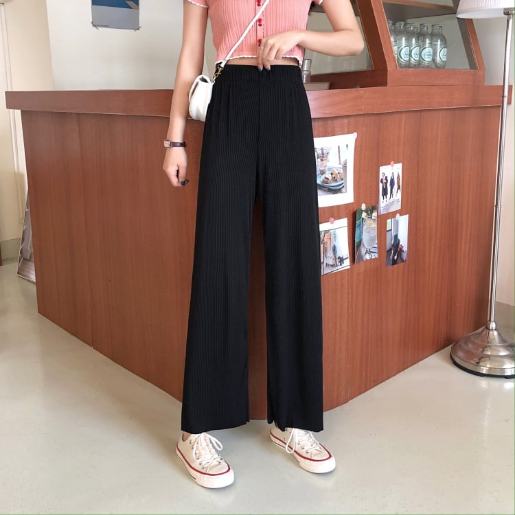 アイスシルクワイドレッグパンツレディースハイウエストドレープ2020年夏新バージョンブラックルーズストレートカジュアルロングパンツトレンド 1号婦人67595300400