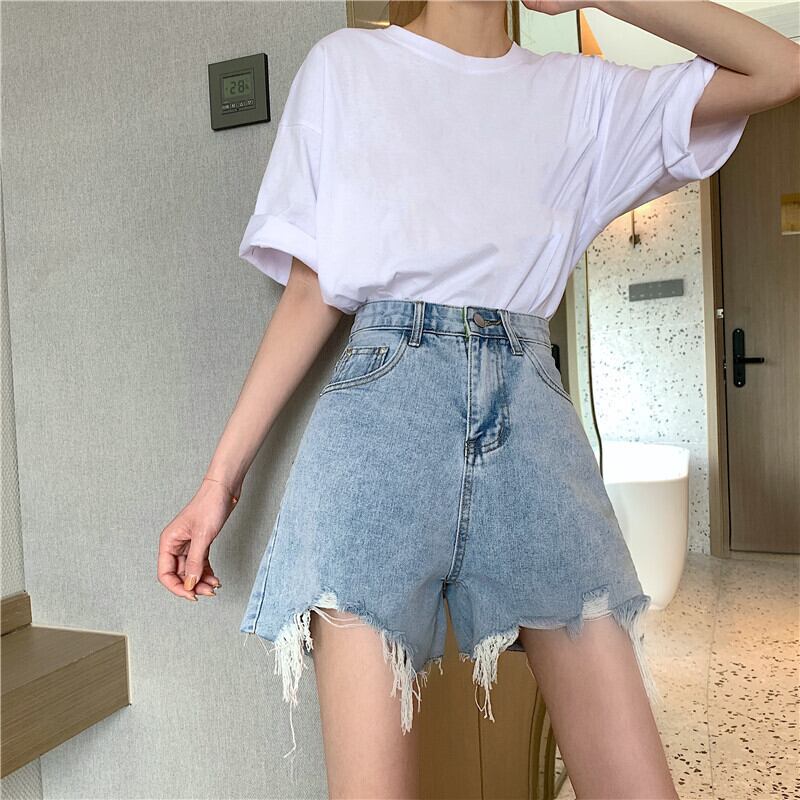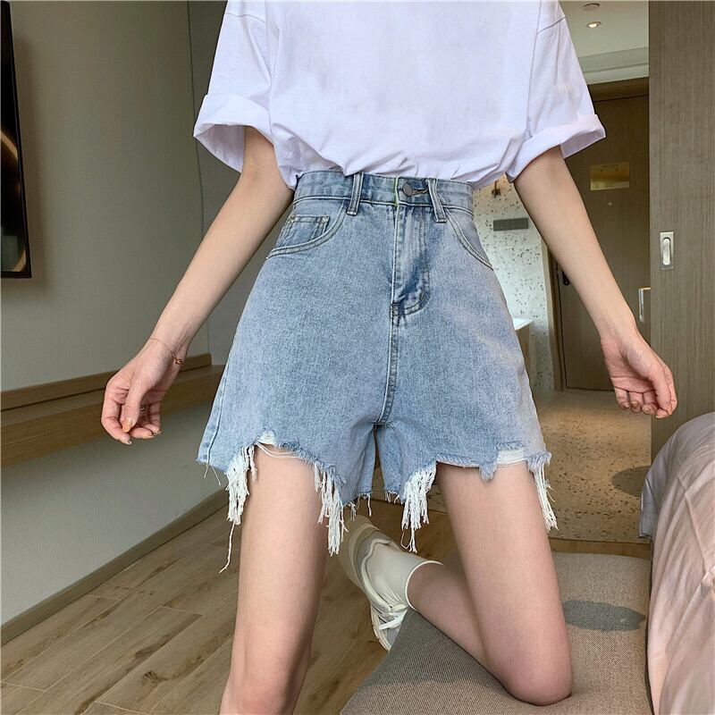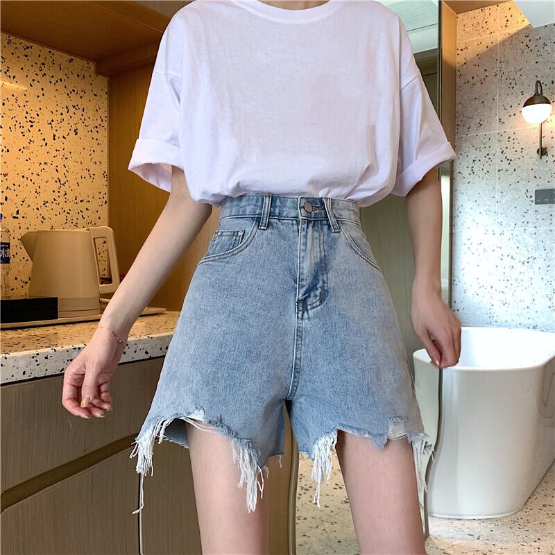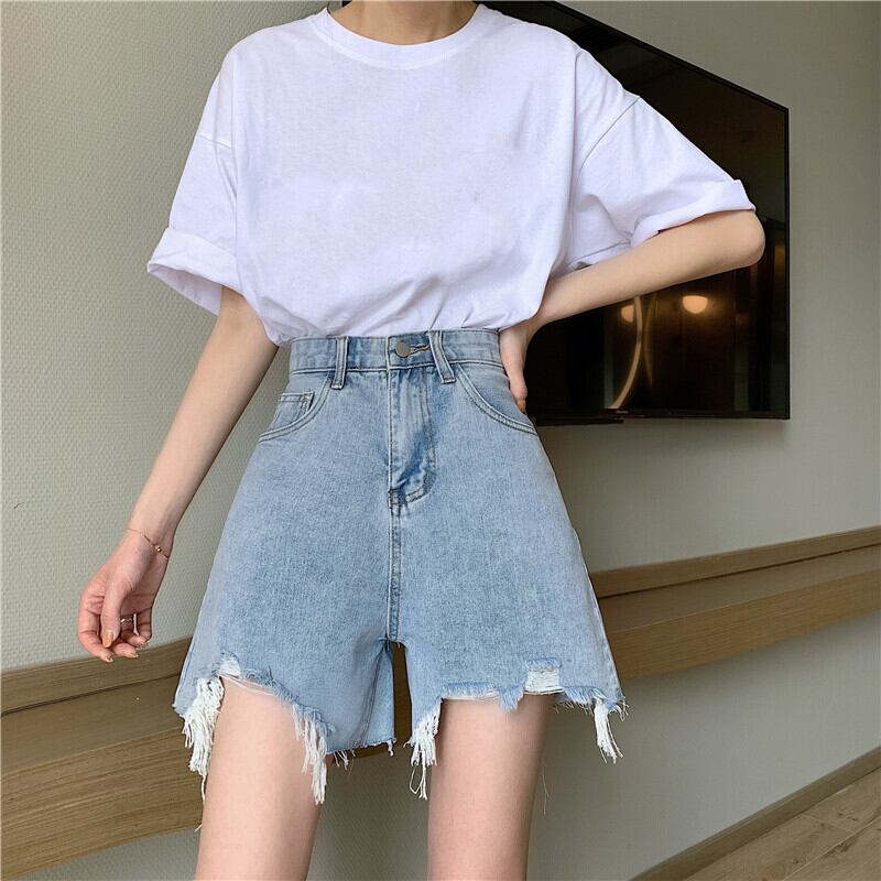 2020年夏のルーズストレートレッグパンツの新しい女性バージョン、擦り切れたエッジ、ハイウエスト、薄くてワイルドなデニムショートパンツ、パンツ 1号婦人20053105767