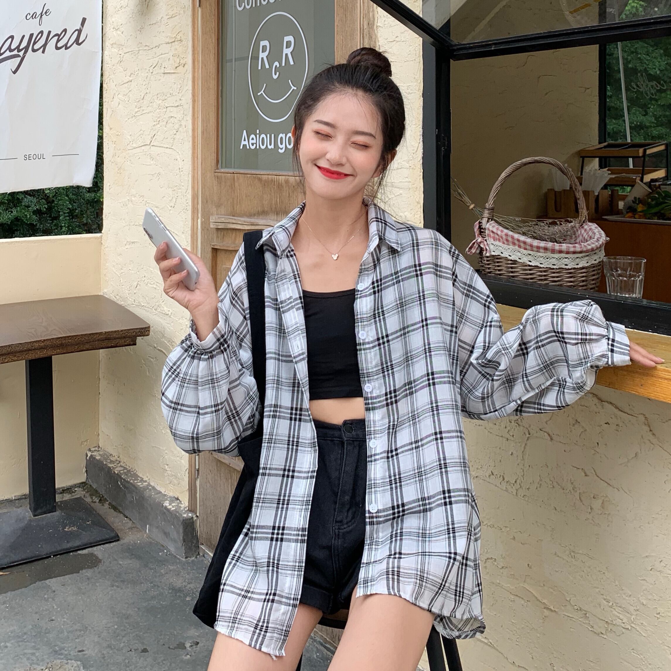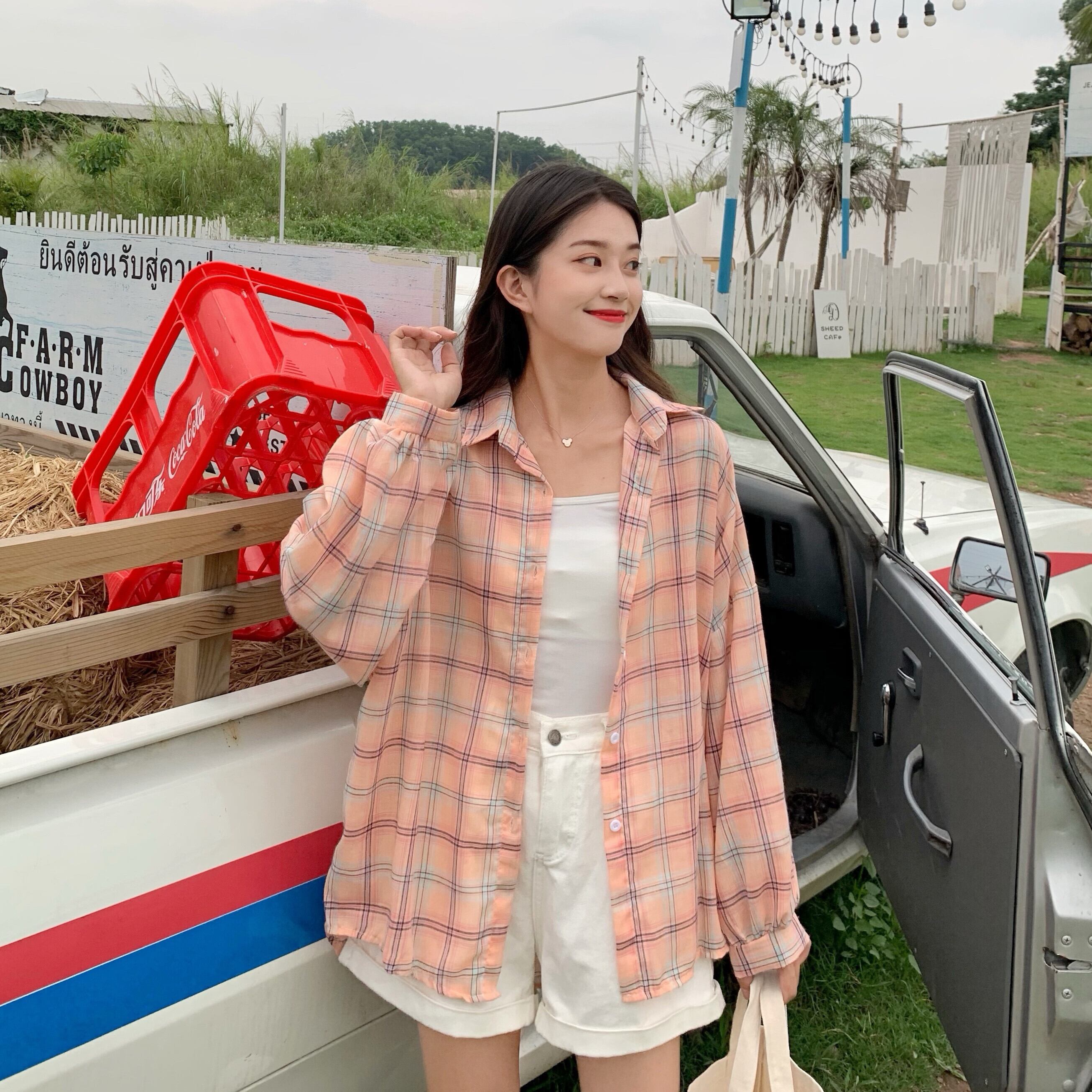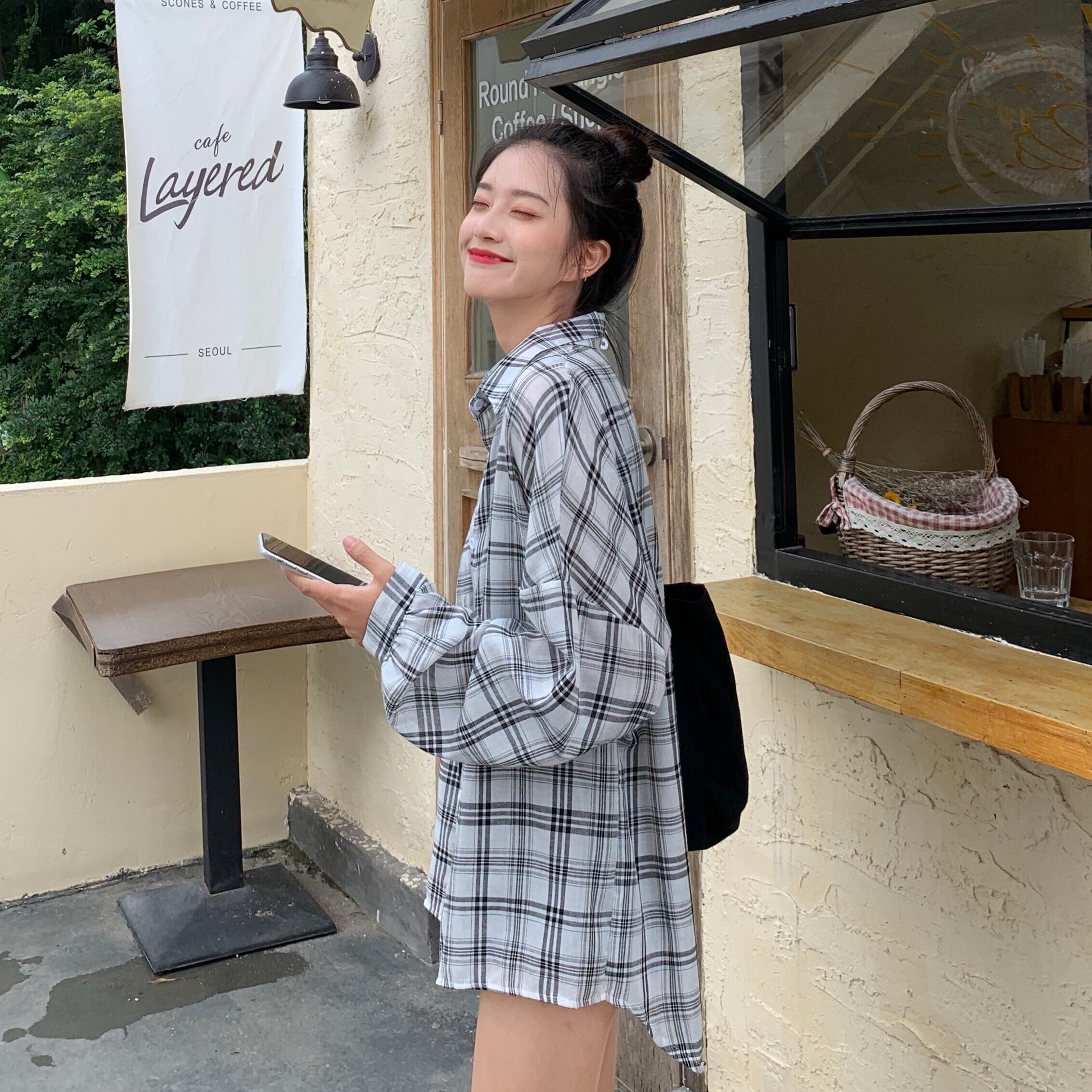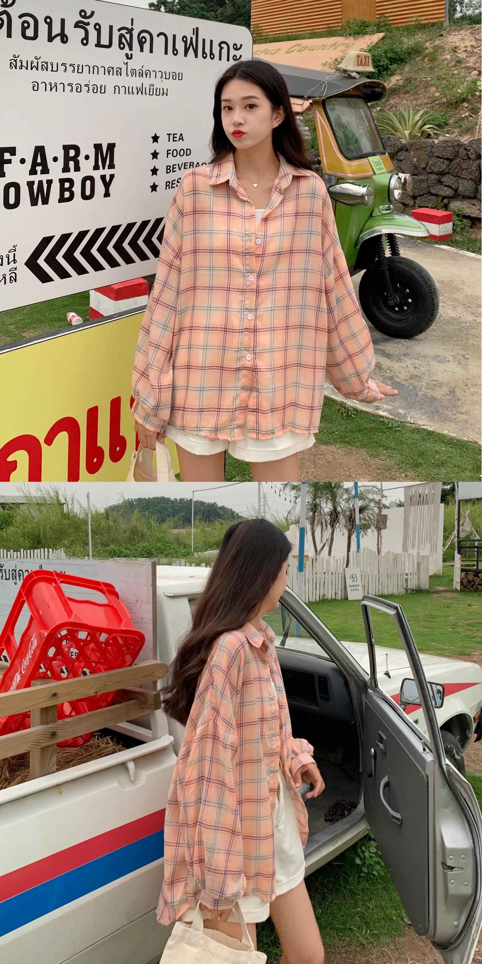 秋のシャツ、長袖の女性用チェック柄シャツ、女性のデザインセンスのニッチ、オールマッチのアウター、ルーズな秋のジャケット 1号婦人64583794766