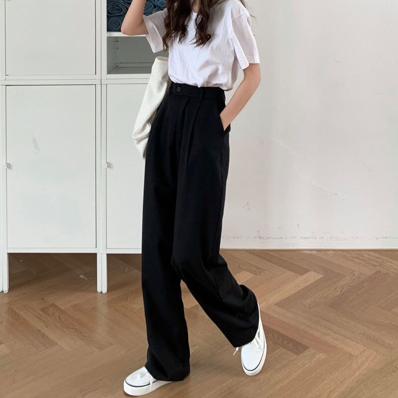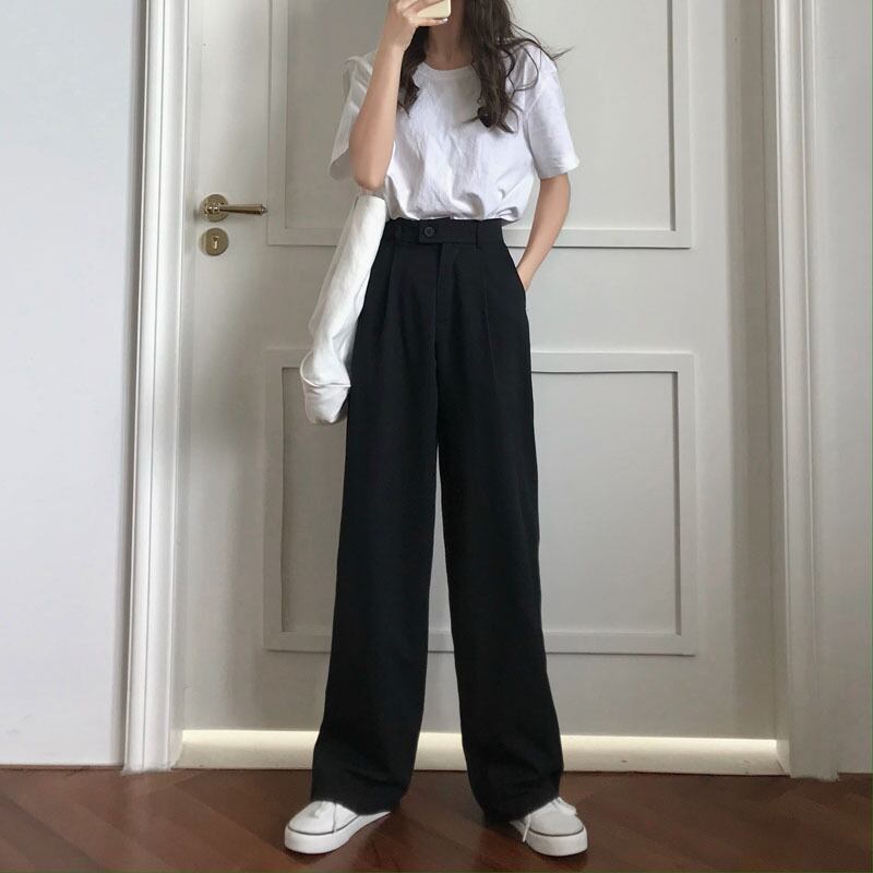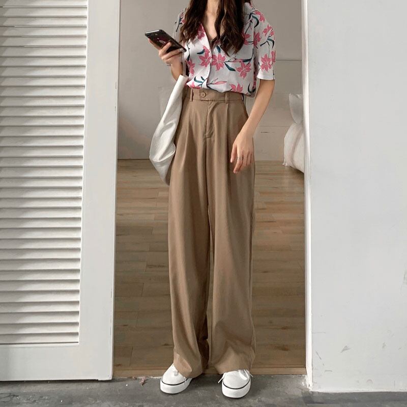 2020年夏新作ハイウエストドレープストレートワイドレッグパンツ無地スーツカジュアルパンツ女性インタイド 1号婦人44361305491