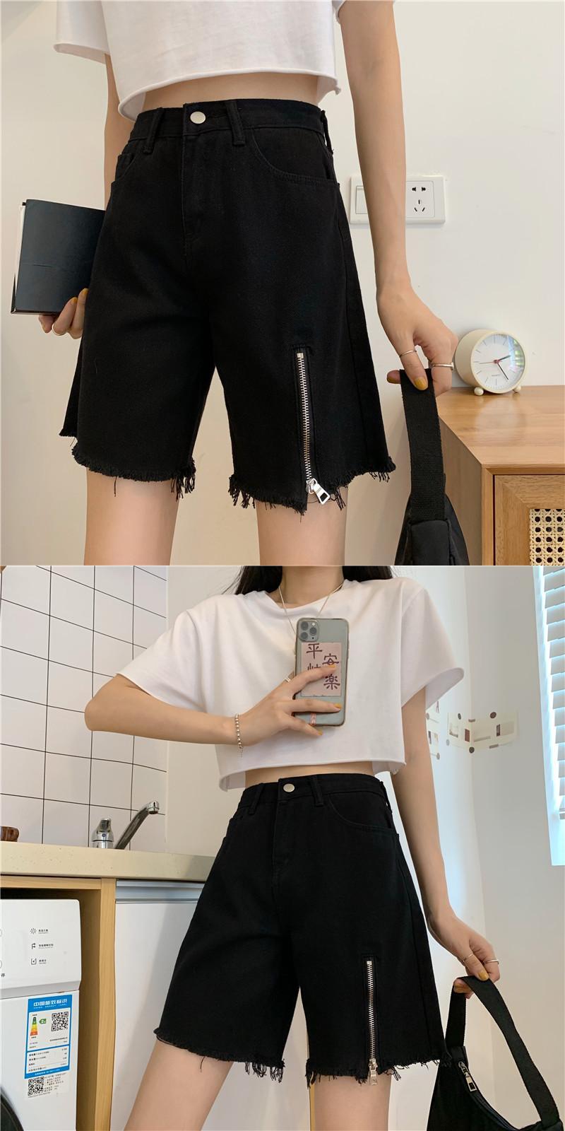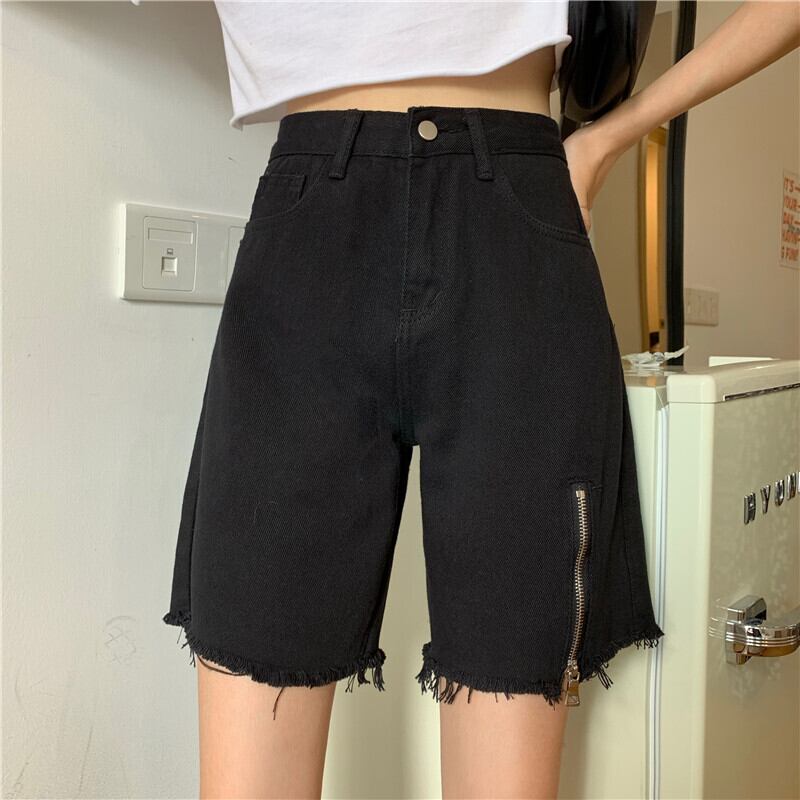 2020年夏の新作レディースバージョンのルーズハイウエストシン擦り切れジーンズショーツジッパーストレート5点パンツ 1号婦人57969039429