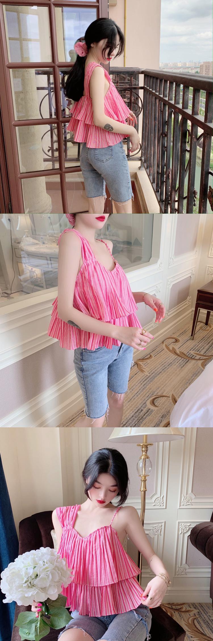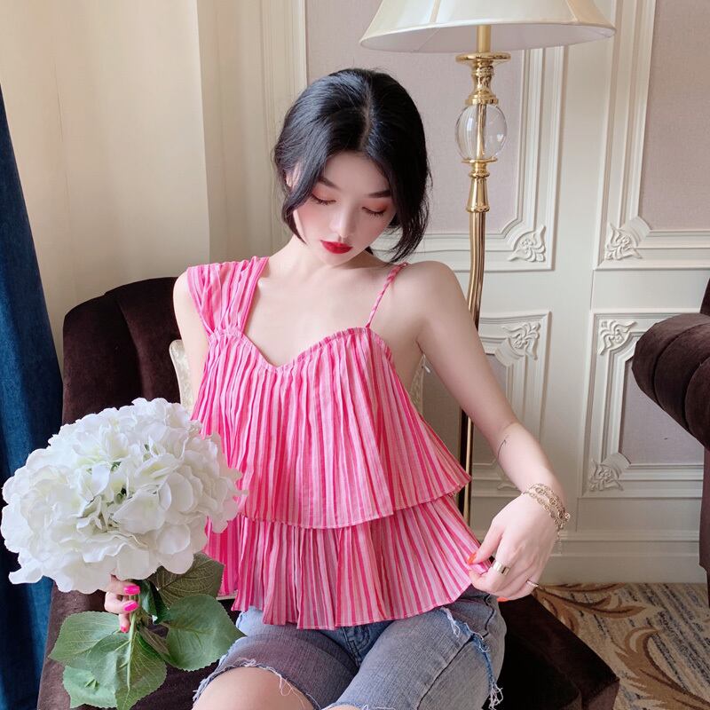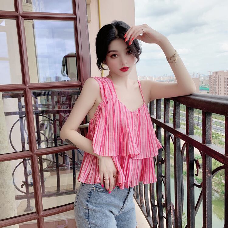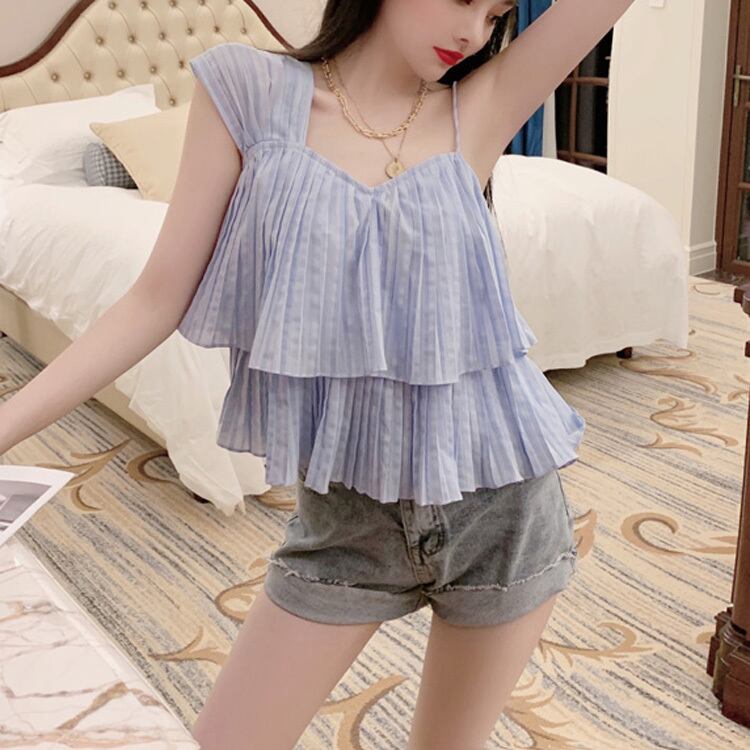 2020年夏の新しいレディースバージョンのワイルドでセクシーなストラップレスノースリーブスリミングフリルイレギュラースリングトップ 1号婦人67449258579