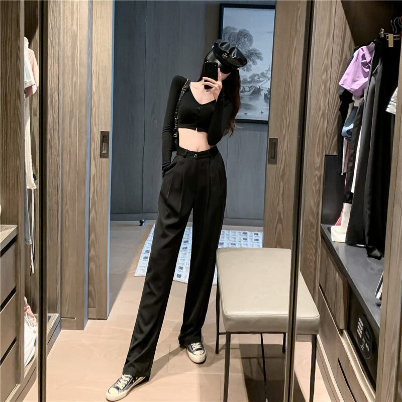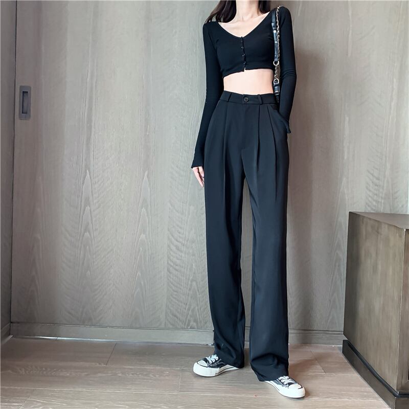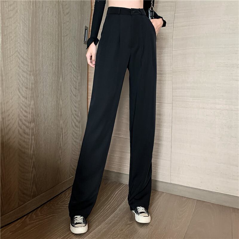 黒のスーツパンツ2020年夏新しいスリムハイウエストストレートカジュアルパンツ女性ドレープローズワイドレッグロングパンツ 1号婦人3302370400