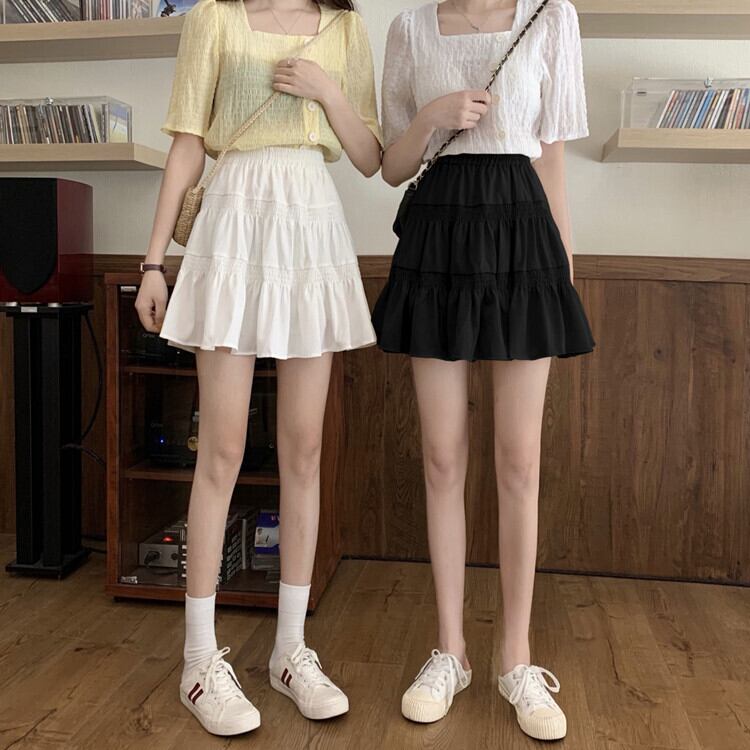 ホワイトハイウエストスカート女性2020年夏新入生バージョンブラック細いAラインプリーツスカートショートスカート 1号婦人28433663590