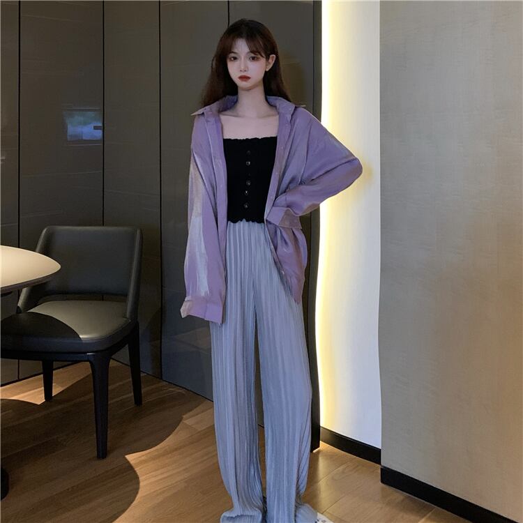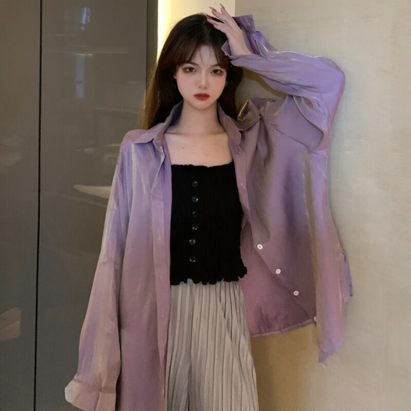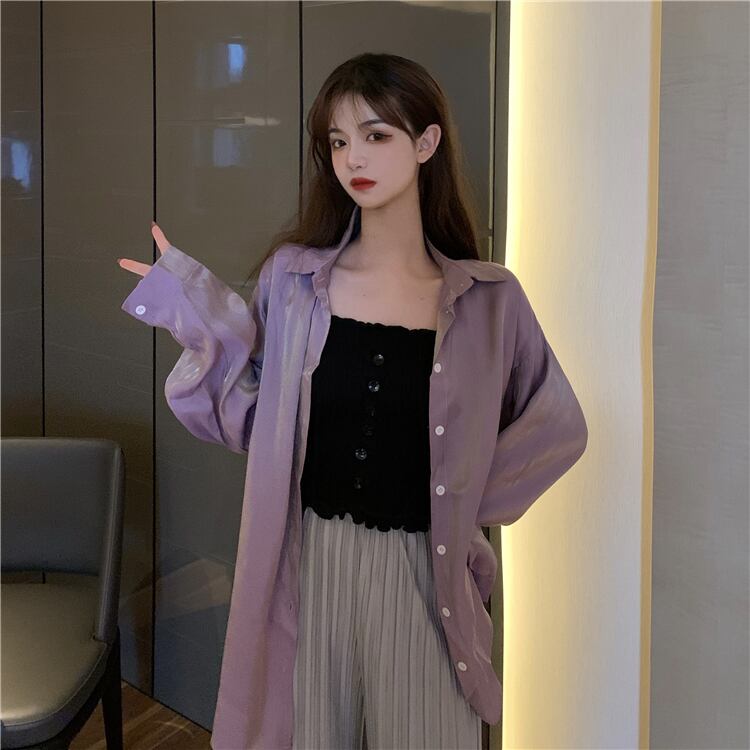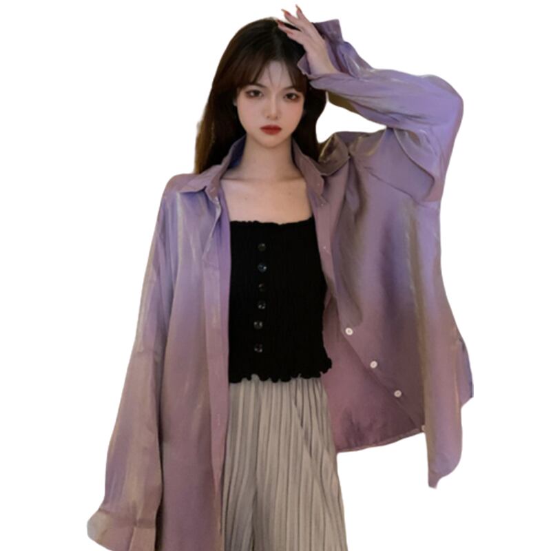 2020年夏の新しい香港スタイルのネットレッドルーズで用途の広いミドル丈の日焼け止めシャツ女性の長袖シャツスリーピーストレンド 1号婦人31626773611