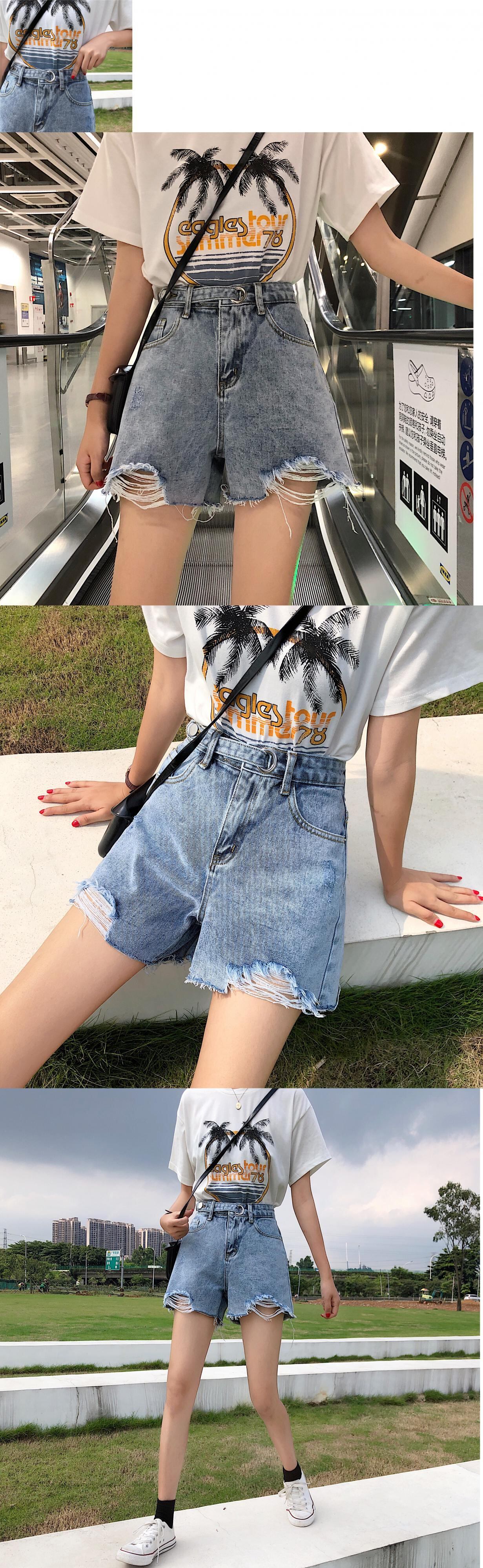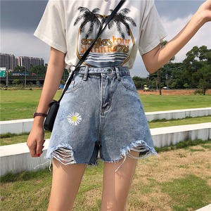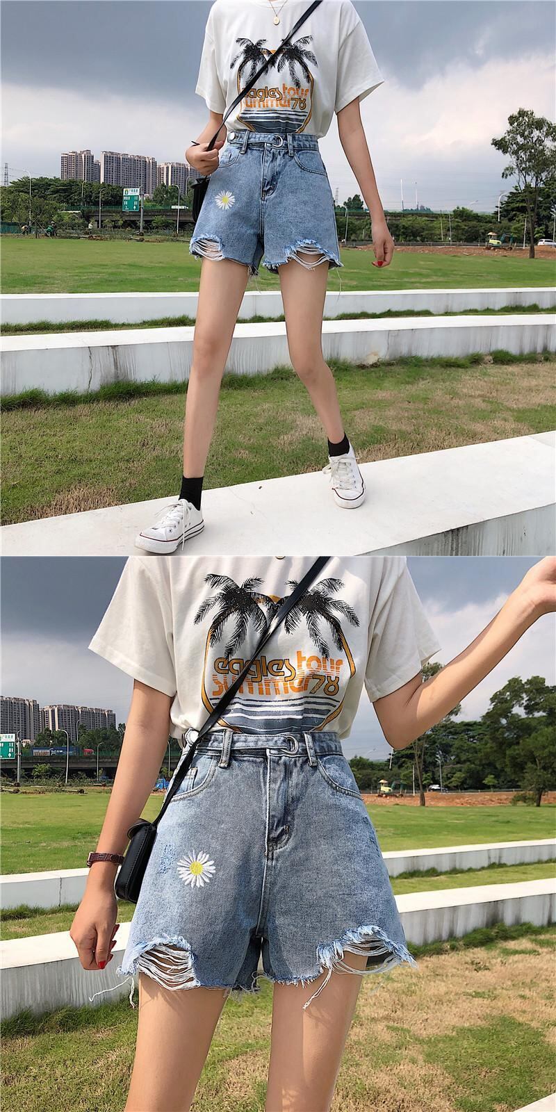 2020年夏のニュースタイルスモールデイジーリップドパンツハイウエストルーズストレートワイドレッグジーンズレディースショーツパンツ 1号婦人6255167555