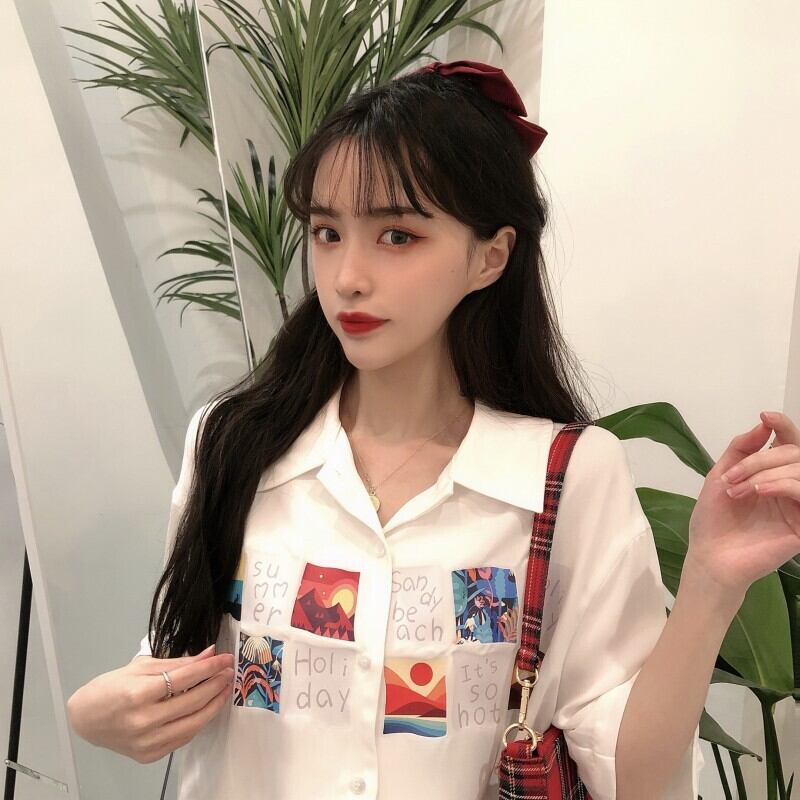 ブラックプリントシャツ2020年夏ウィメンズアウターウェアオールマッチスウィートトップセンスニッチハーフスリーブシャツ 1号婦人90539120941