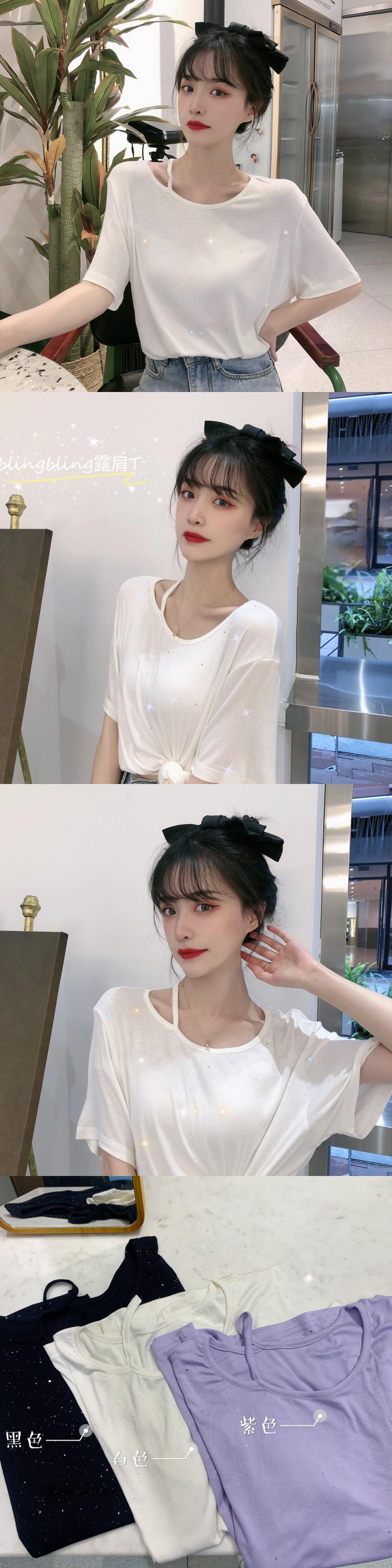 2020年夏の新バージョンのルーズネット赤潮インストラップレス半袖Tシャツトップス女子学生ショートボトミングシャツ 1号婦人12685987458