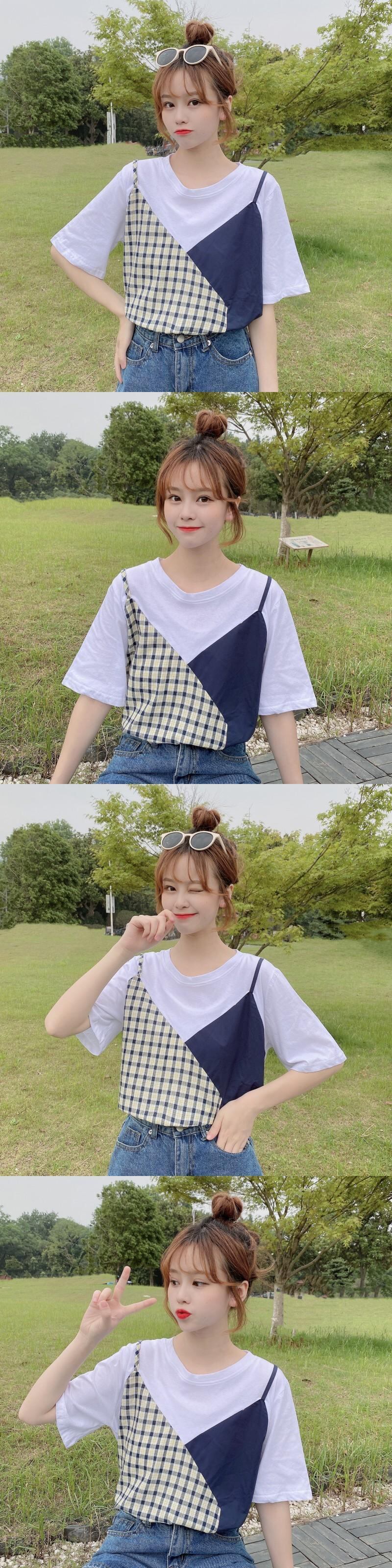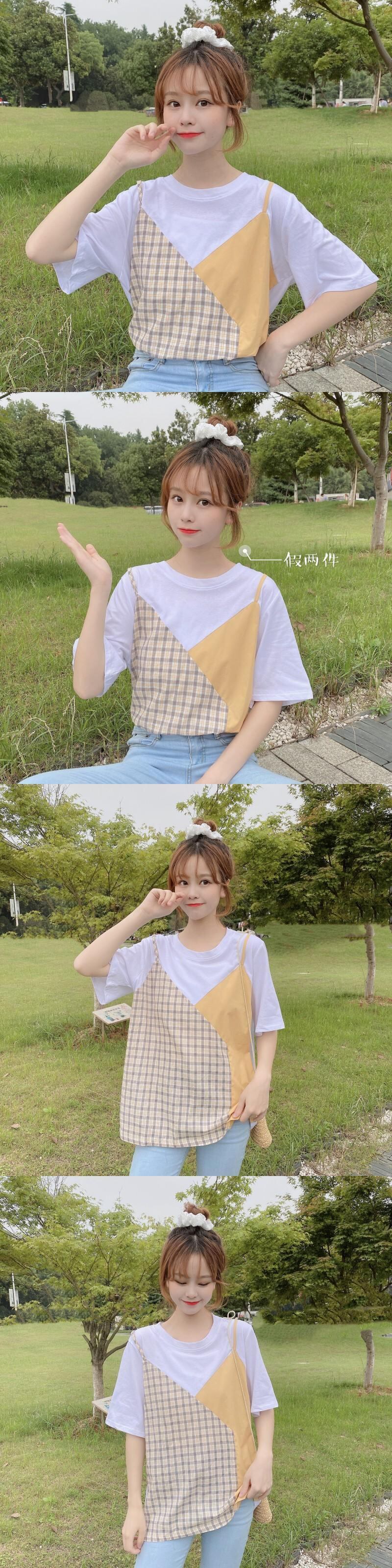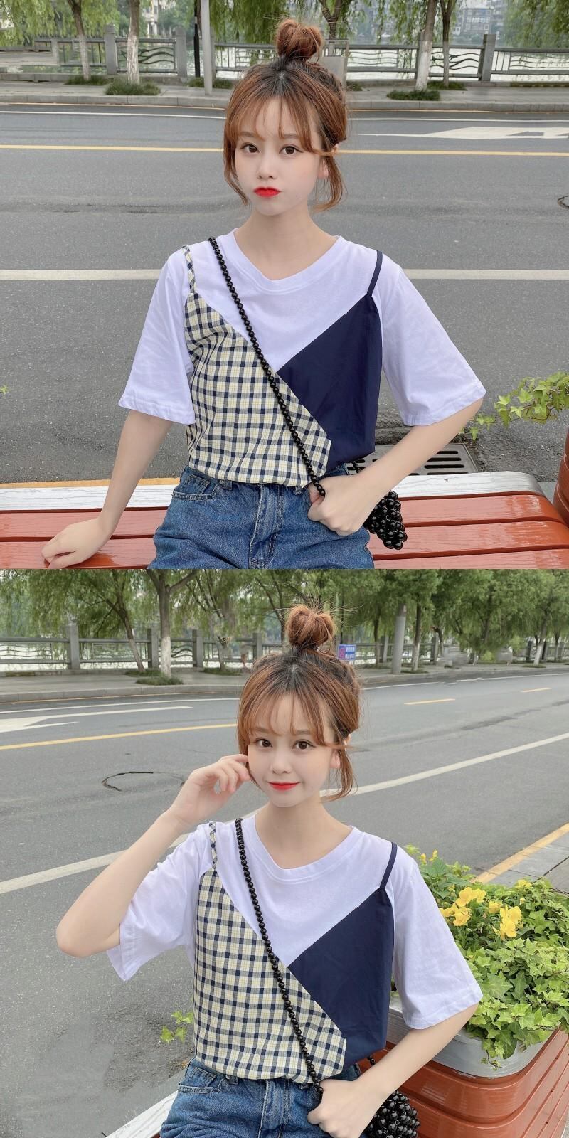 学生ファッションデザインセンス半袖Tシャツ女性2020年夏新インスーパーファイヤーエインスタイルフェイクツーピーストップス 1号婦人47616393539