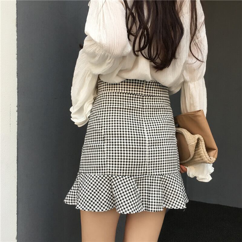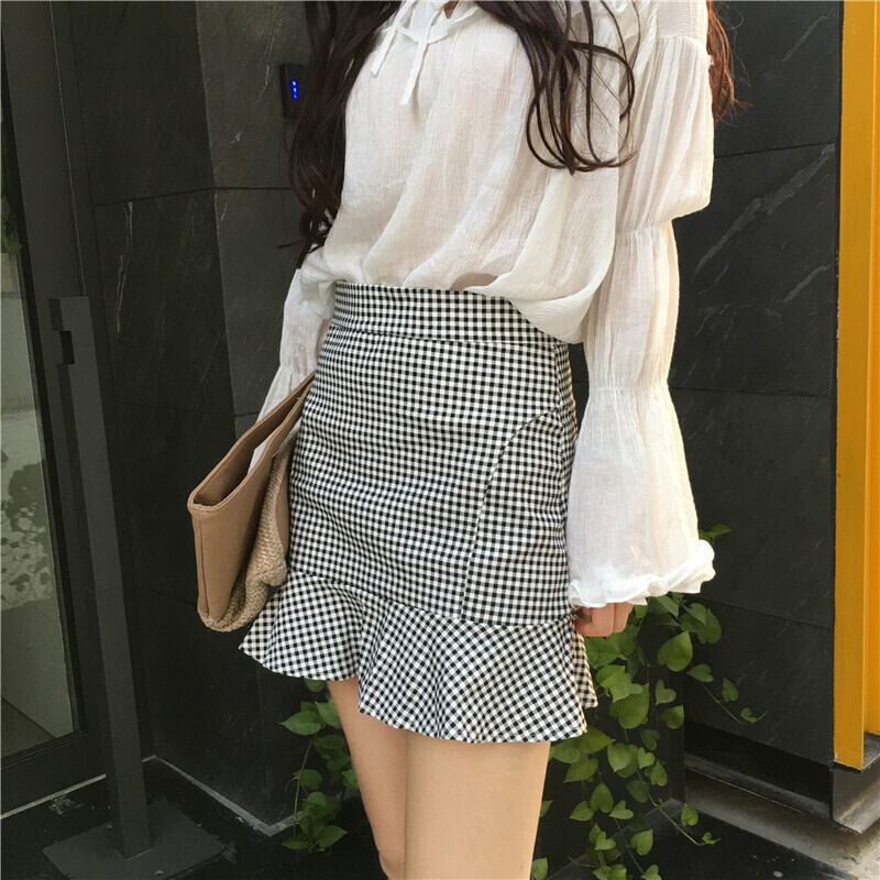 サマースタイル格子柄スカート Aラインショートハイウェストウェストレディース 夏物 1号婦人29315133325