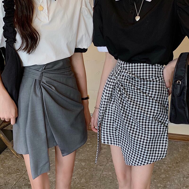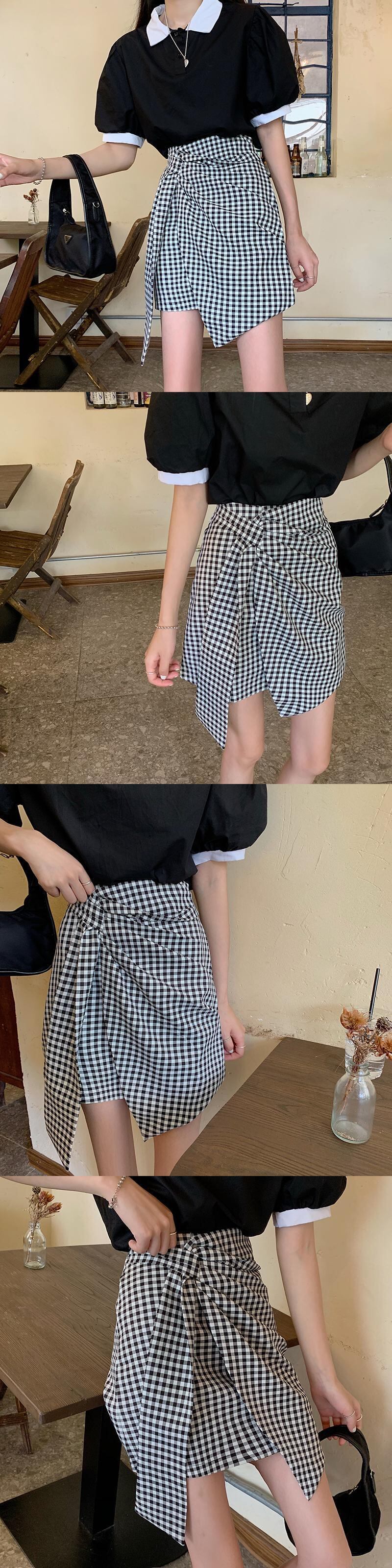 スカート スプリングハイウェストウェスト薄手格子柄Aラインショート 春物 1号婦人64147426730