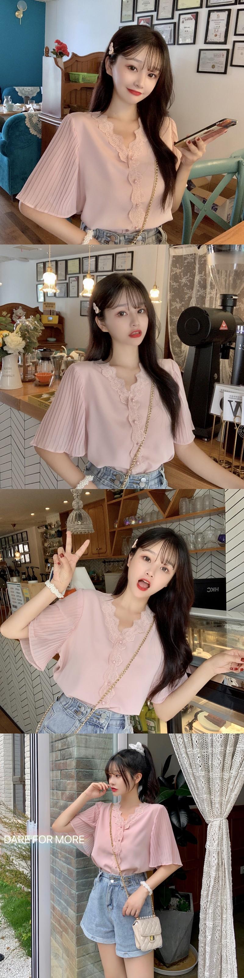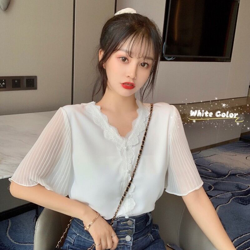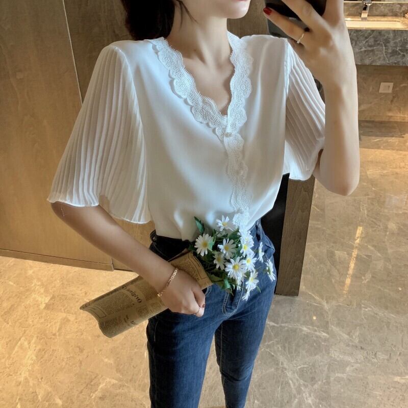 サマースタンダードシフォンシャツ レースホワイトブラウス スタイル レトロ 夏物 ヨーロピアン 1号婦人70826756414