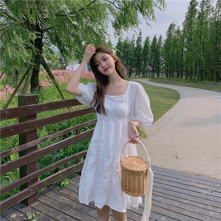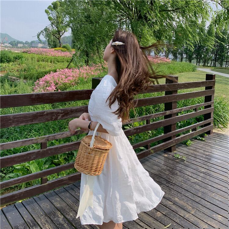 ホワイトスカート サマースリーブドレス ウェスト 大人ガーリー スウィート キュート カジュアル 夏物 1号婦人95824785042