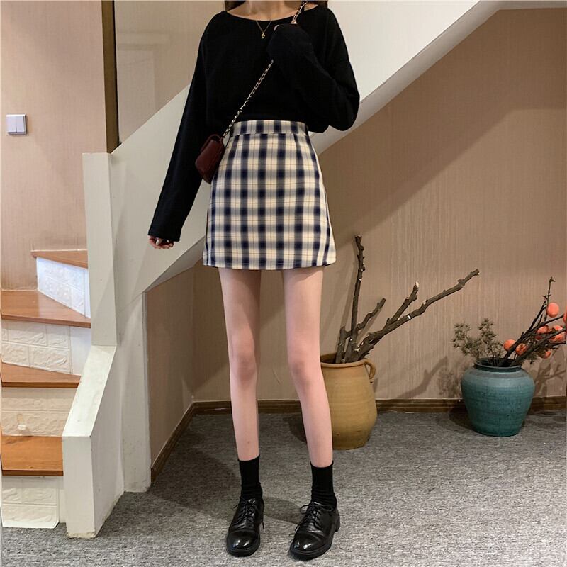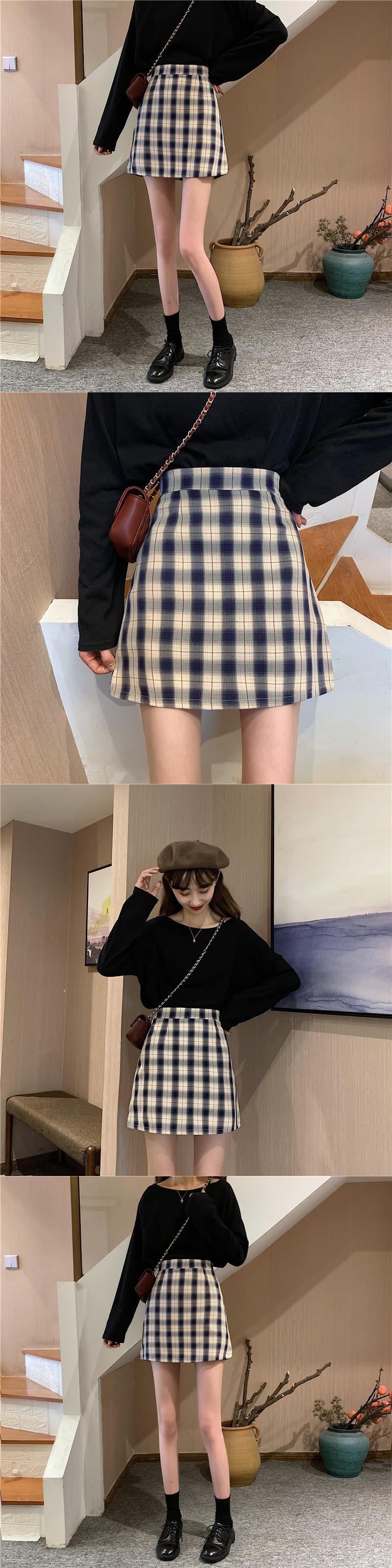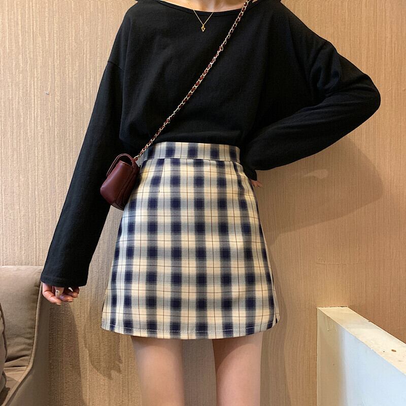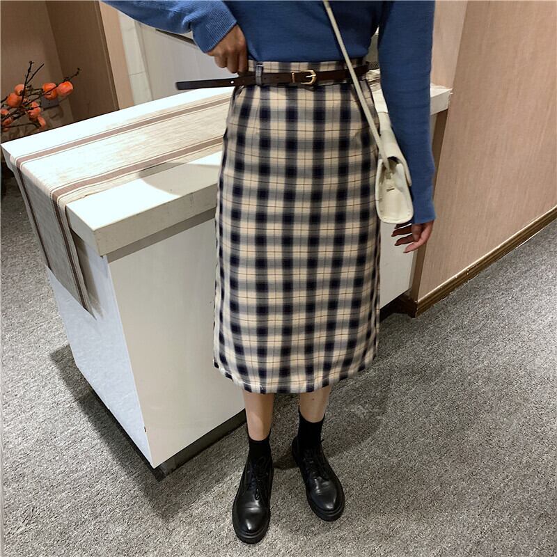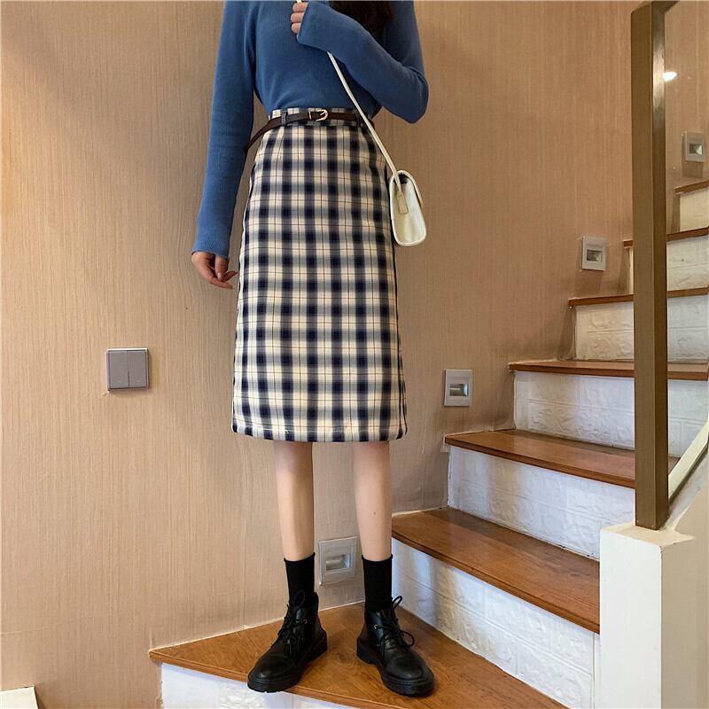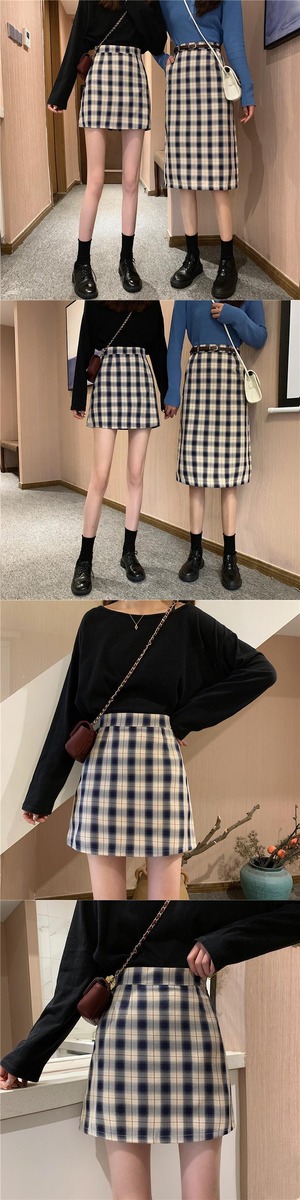 スプリングハイウェストスリム格子柄スカート 春物 1号婦人22801672570