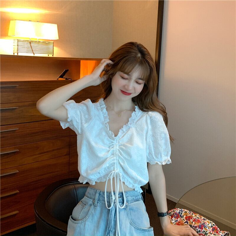 サマーVネックスリーブシャツ ギャザープリーツショートトップス 夏物 1号婦人39815734152