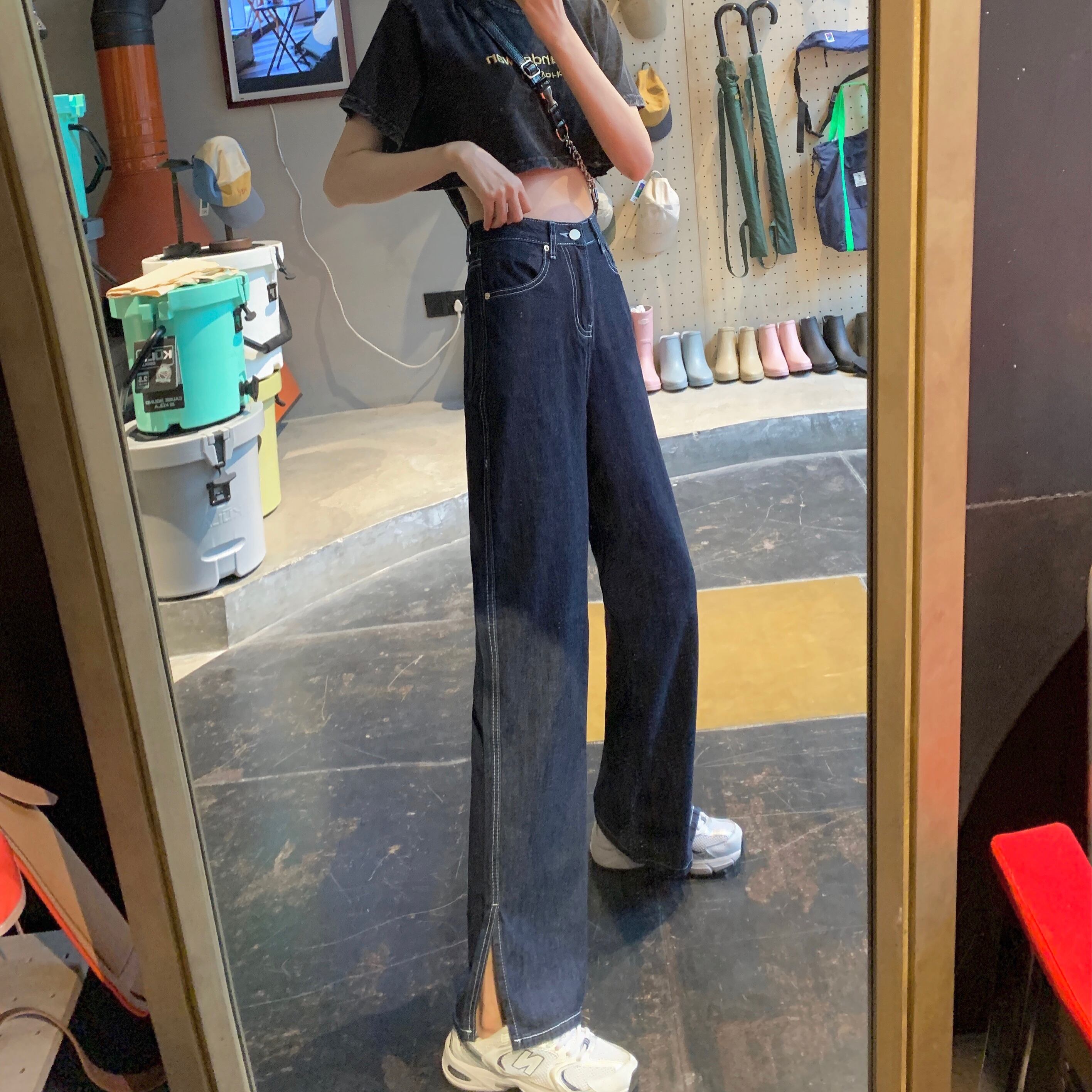 ジーンズ サマーダークスタンダード薄手ルーズスリム レトロ 夏物 1号婦人12984844202