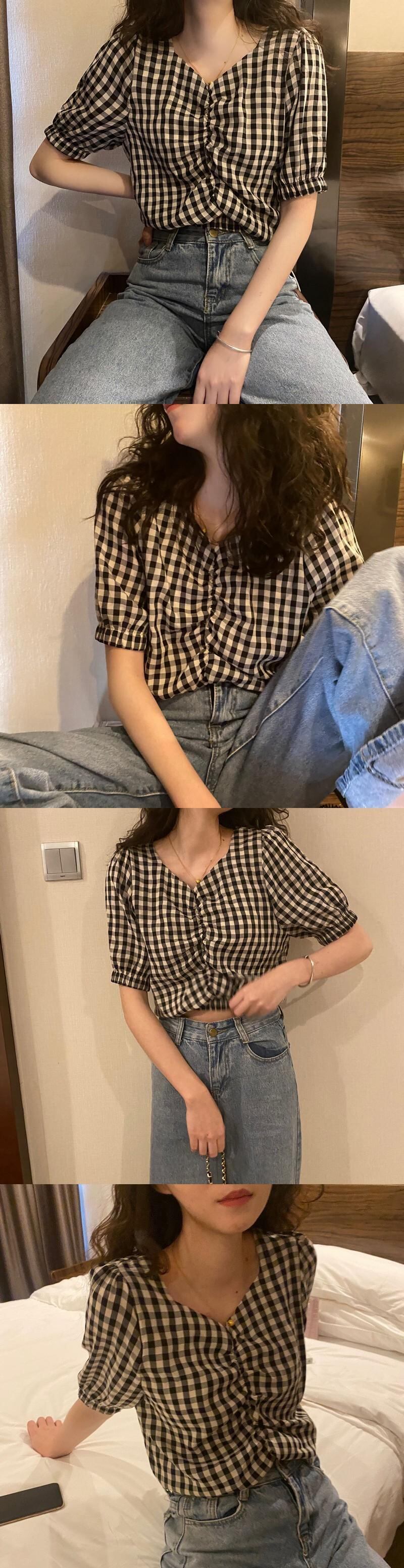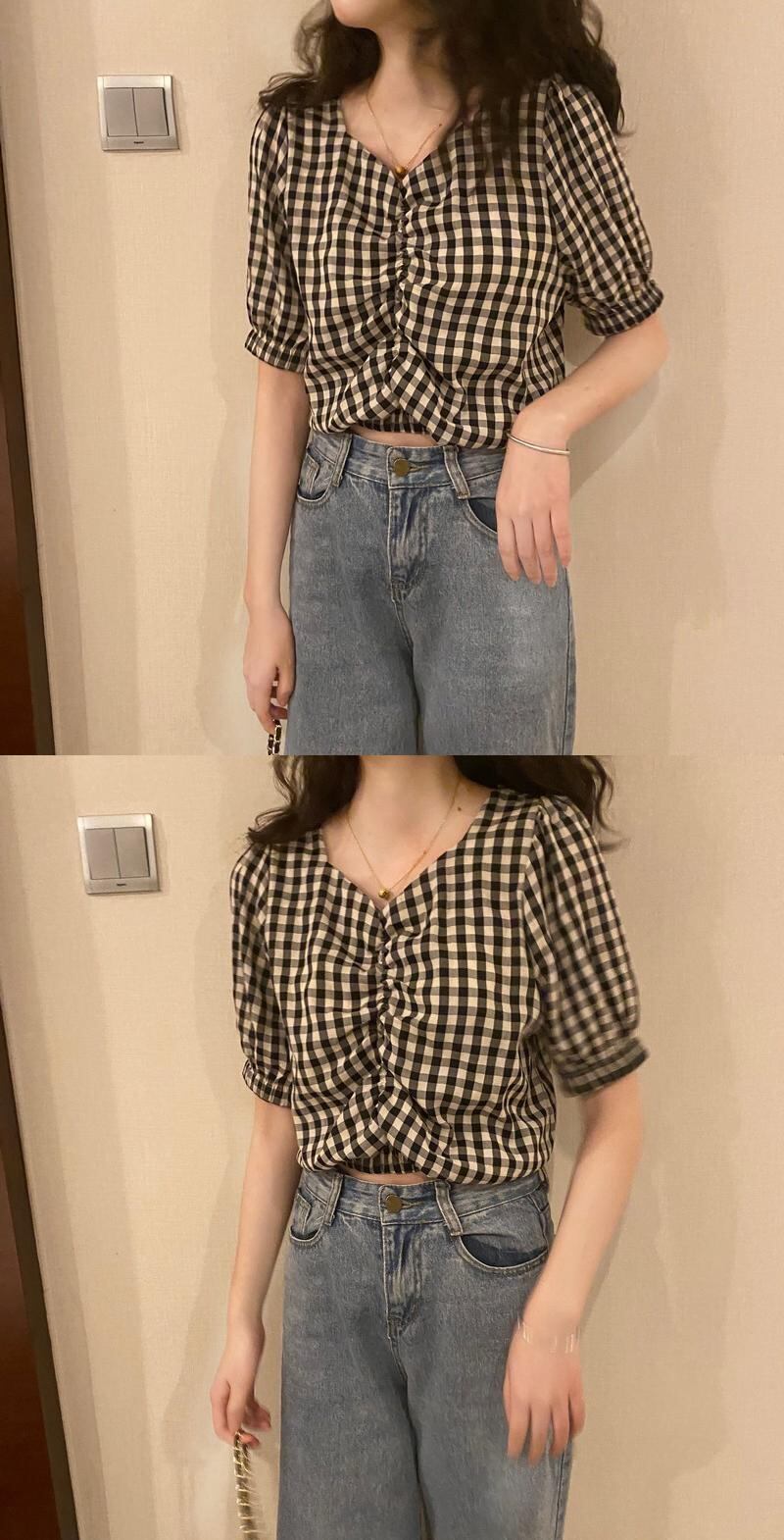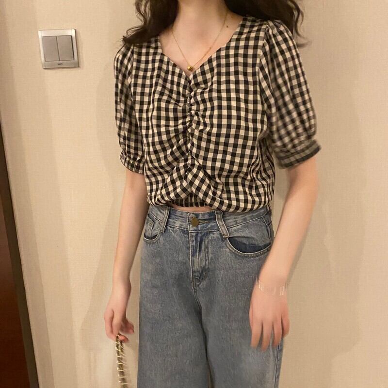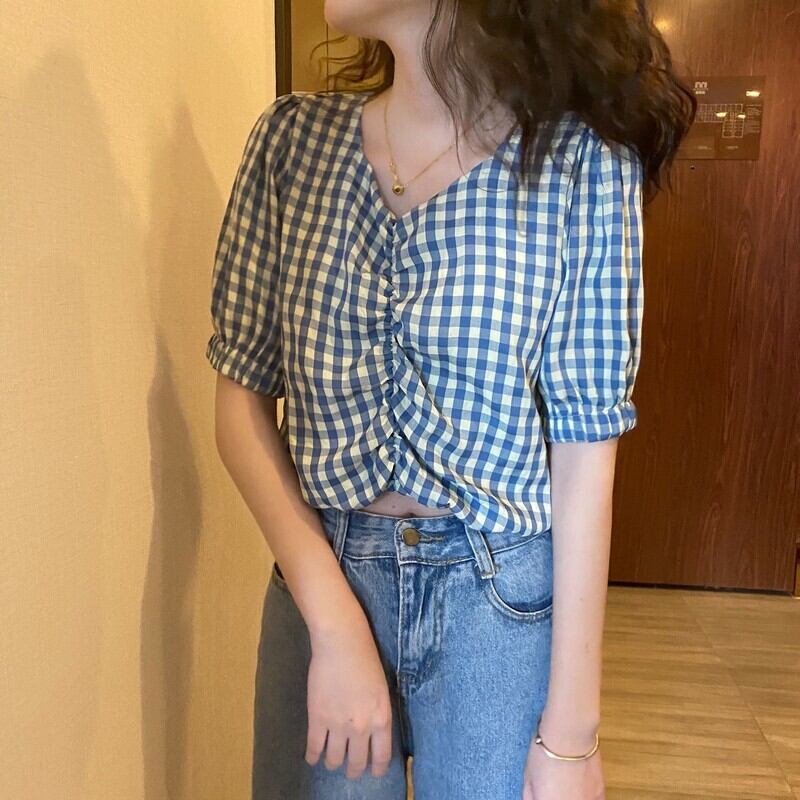 サマースタンダードVネックショートシャツ トップス レトロ 夏物 1号婦人75563739378
