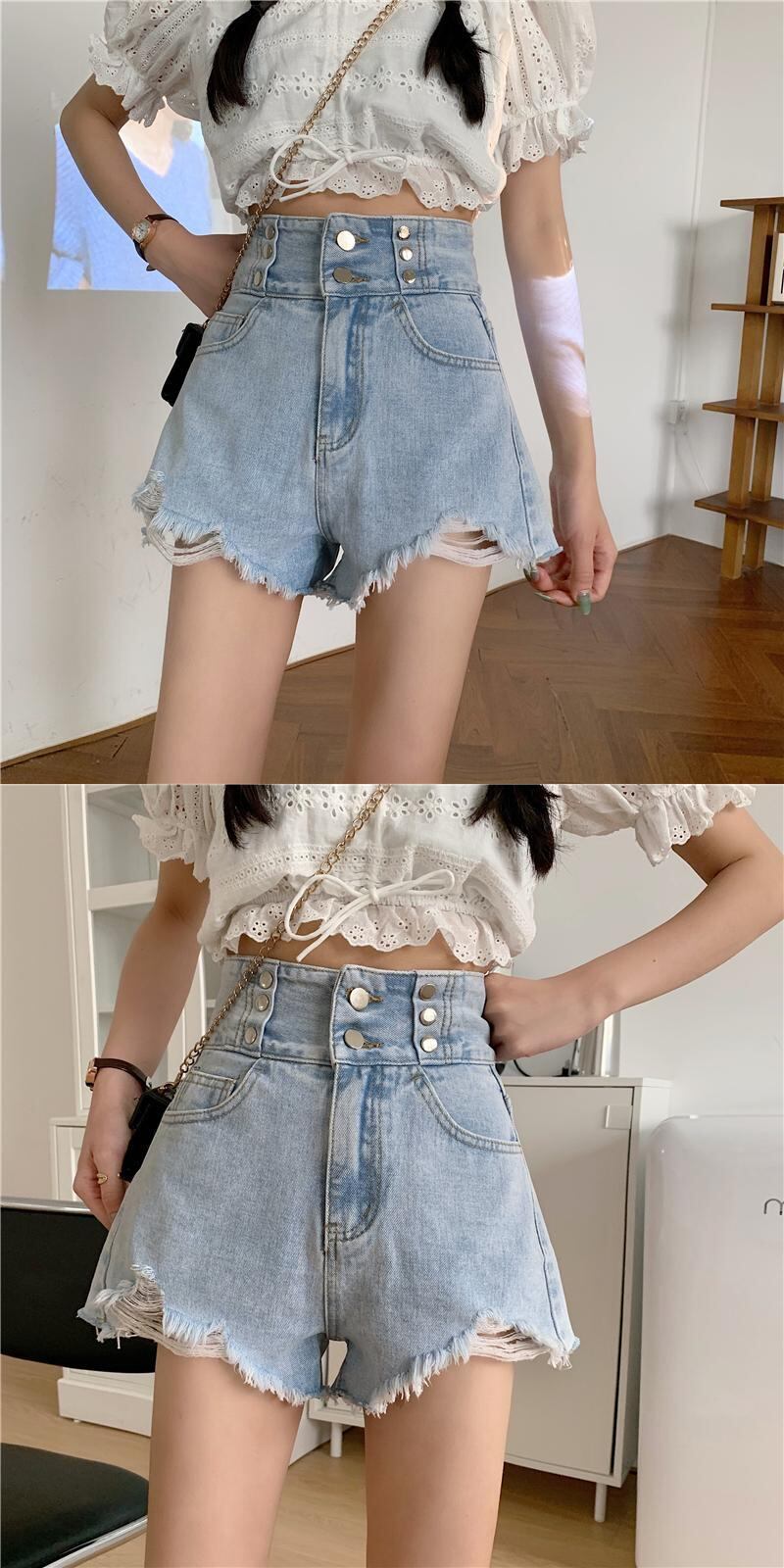 ハイウェストウェストショーツ スプリングジーンズ レディースルーズ薄手パンツ 春物 ブルマー 1号婦人57683187872