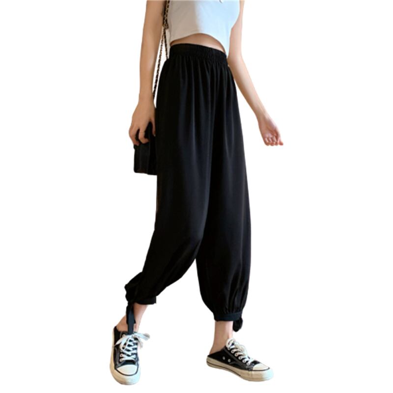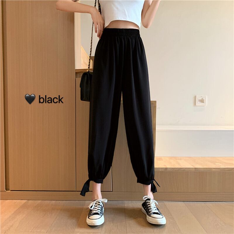 パンツ レディースサマー薄手ウェストブラックカジュアルハイウェスト 夏物 ショーツ ブルマー シルク 1号婦人96768824745