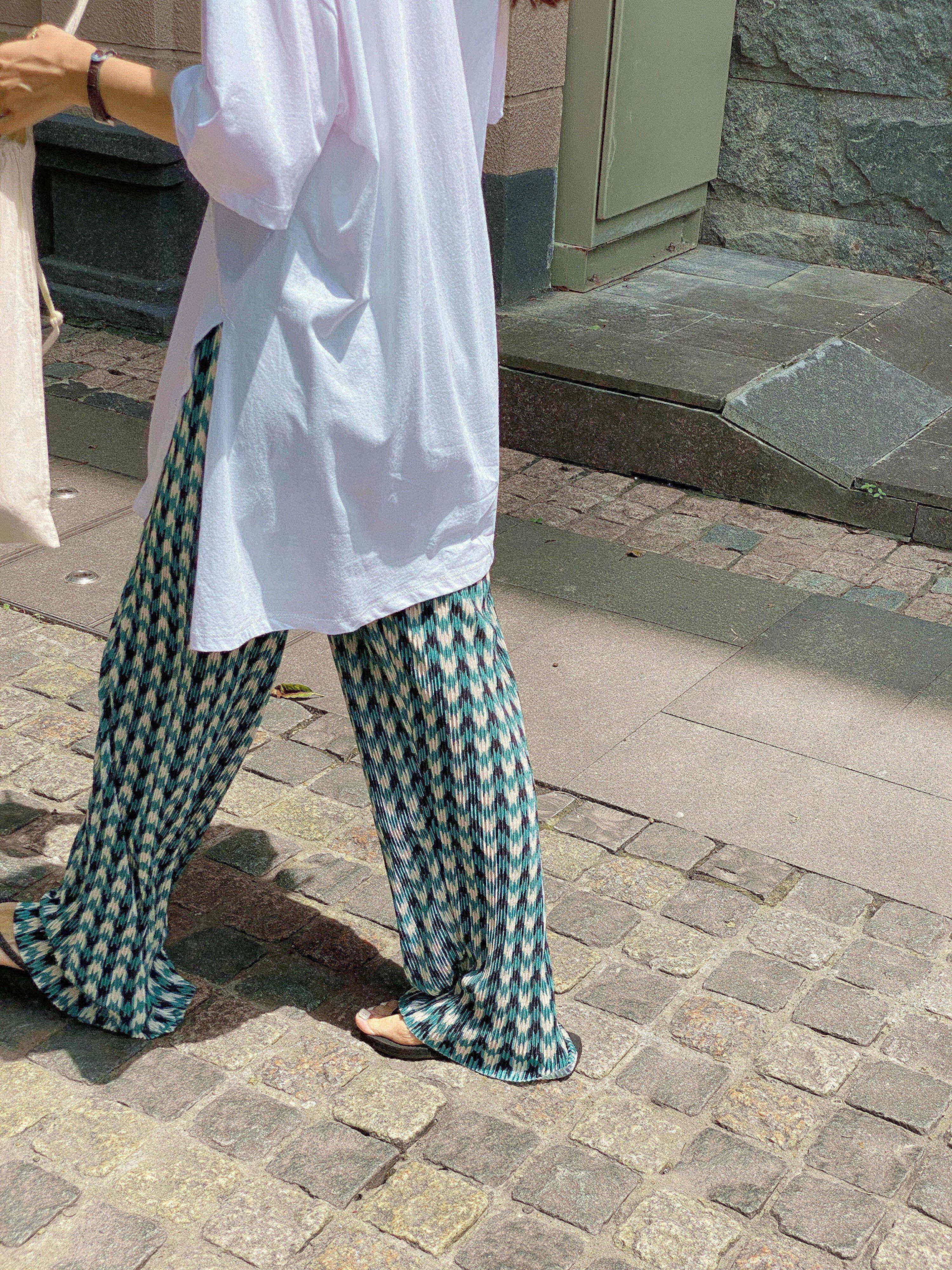 セット サマールーズスリットTシャツ プリーツカジュアルパンツ 夏物 1号婦人7468753374