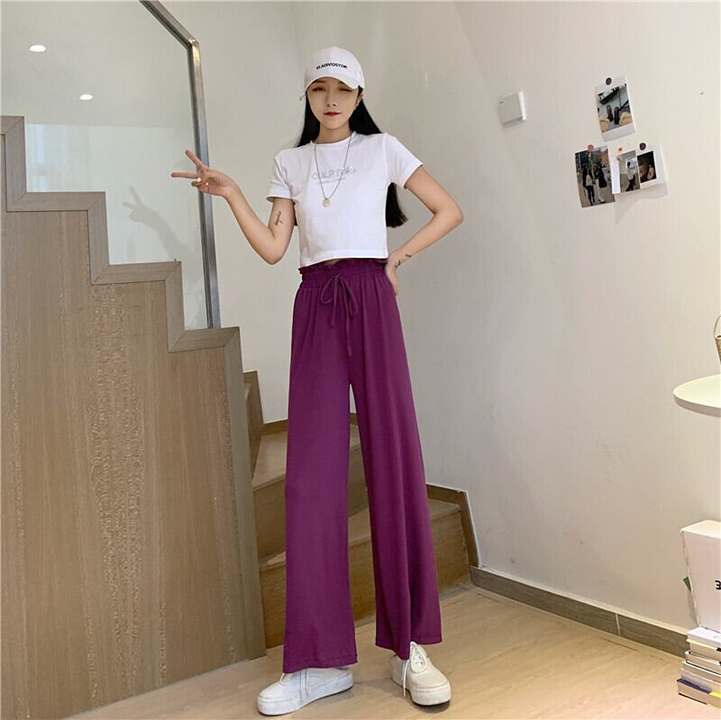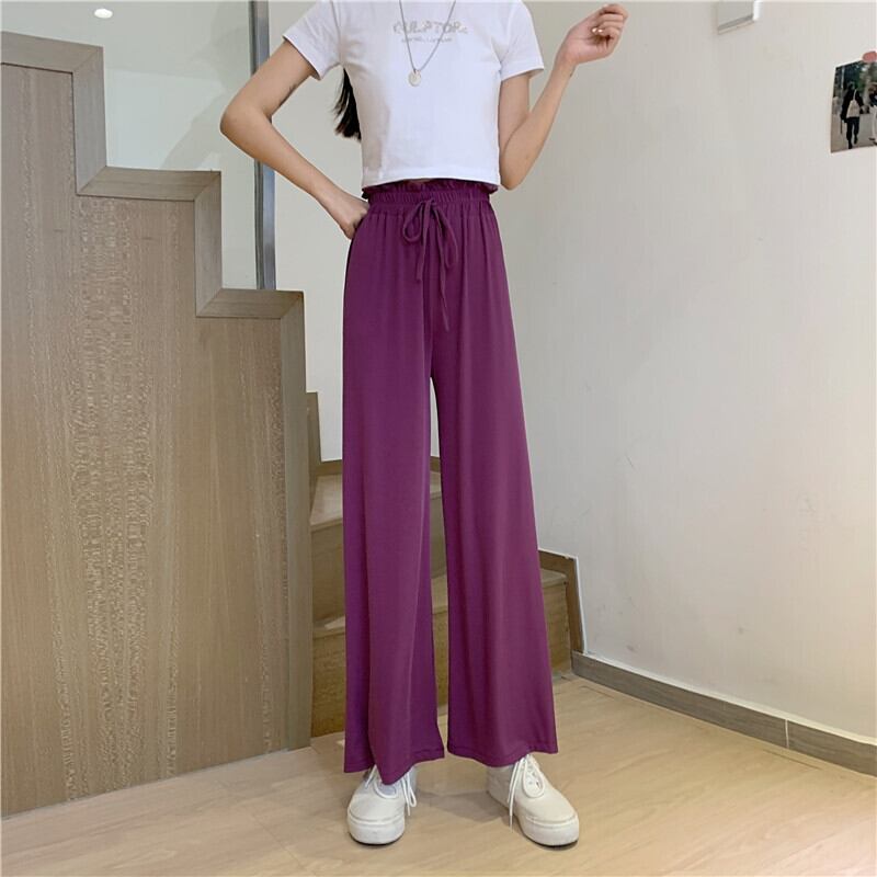 薄手サマールーズワイドレッグパンツ ハイウェストウェストカジュアル 夏物 ワイドパンツ パープル 1号婦人60945437733