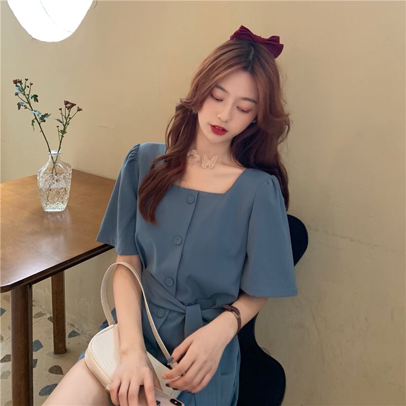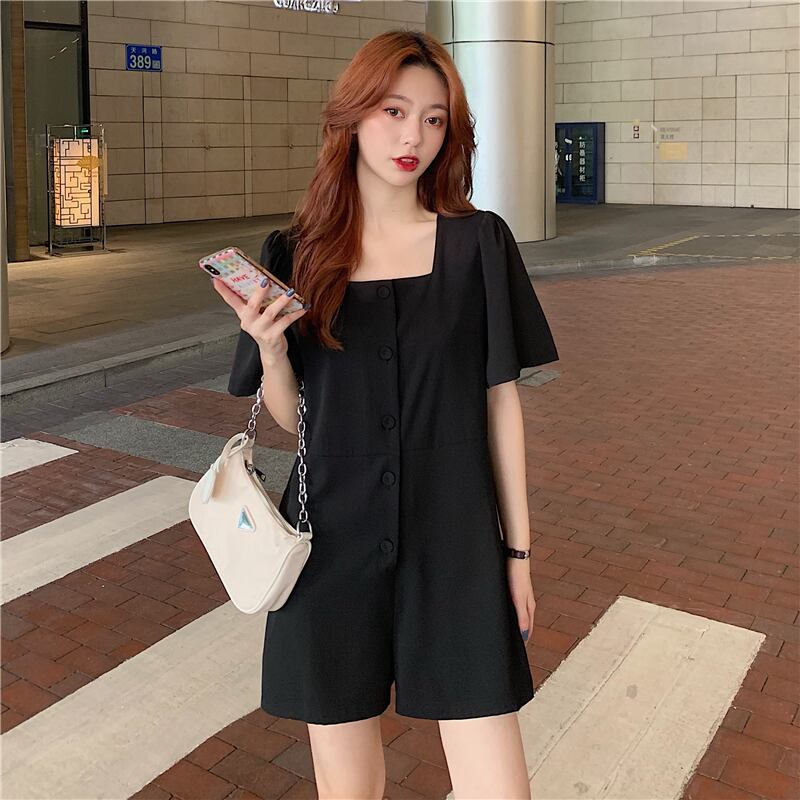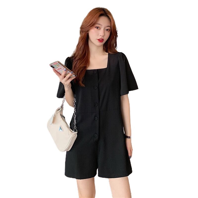 サマースリーブベルト ウェストソリッド カラージャンプスーツ オールインワン 夏物 ハーネス ソリッドカラー スクウェア 1号婦人62791776074
