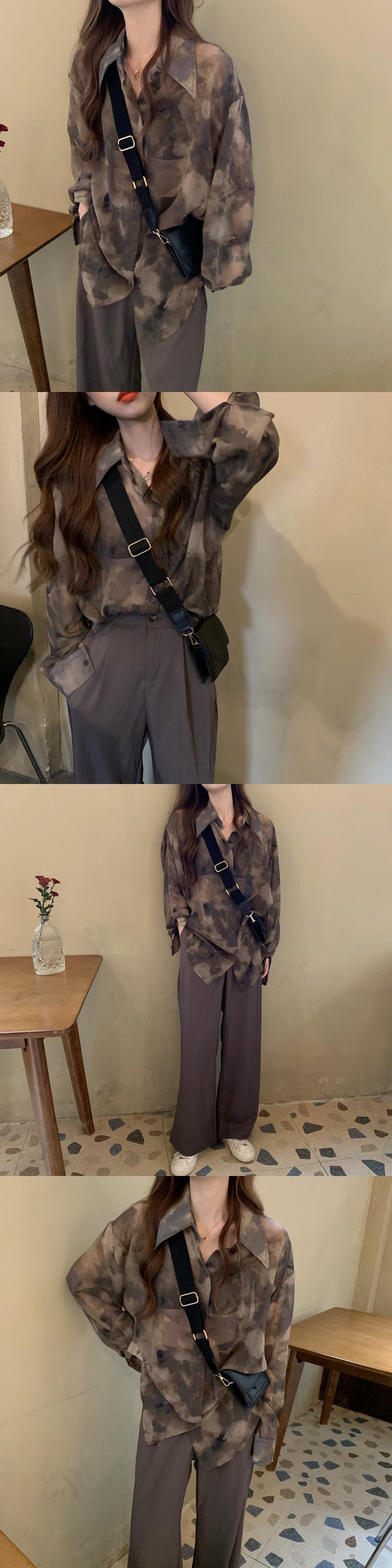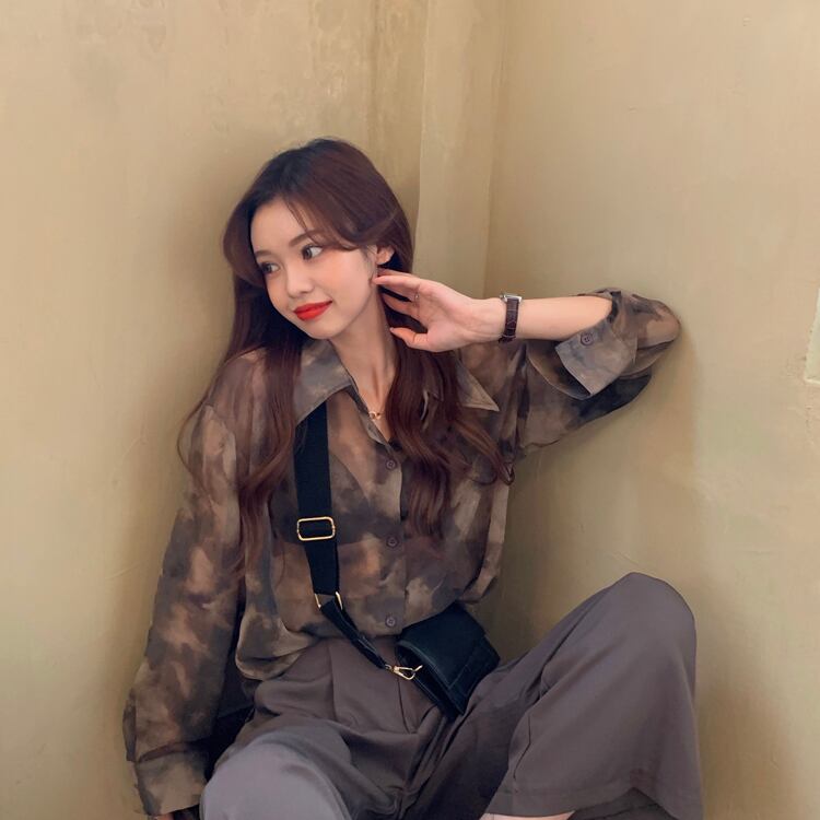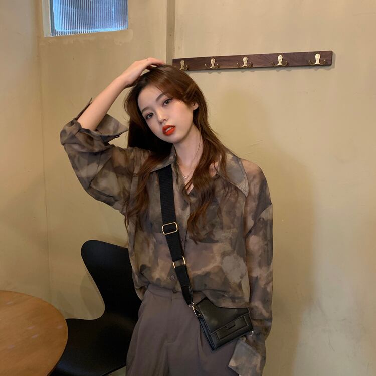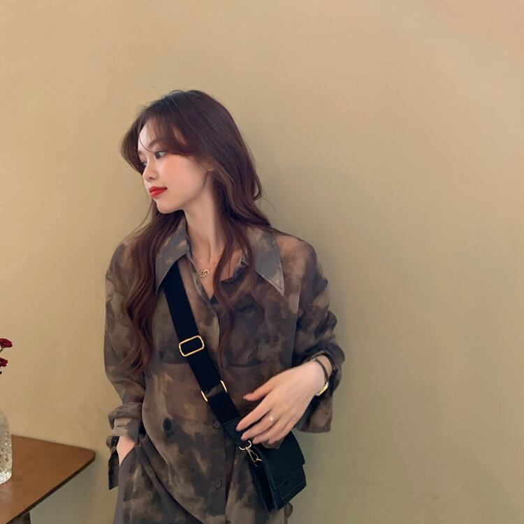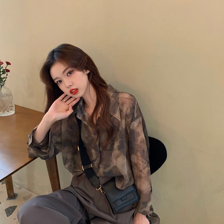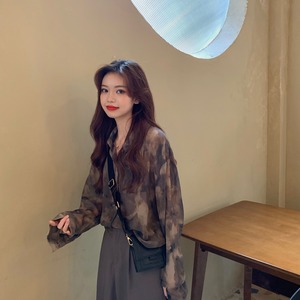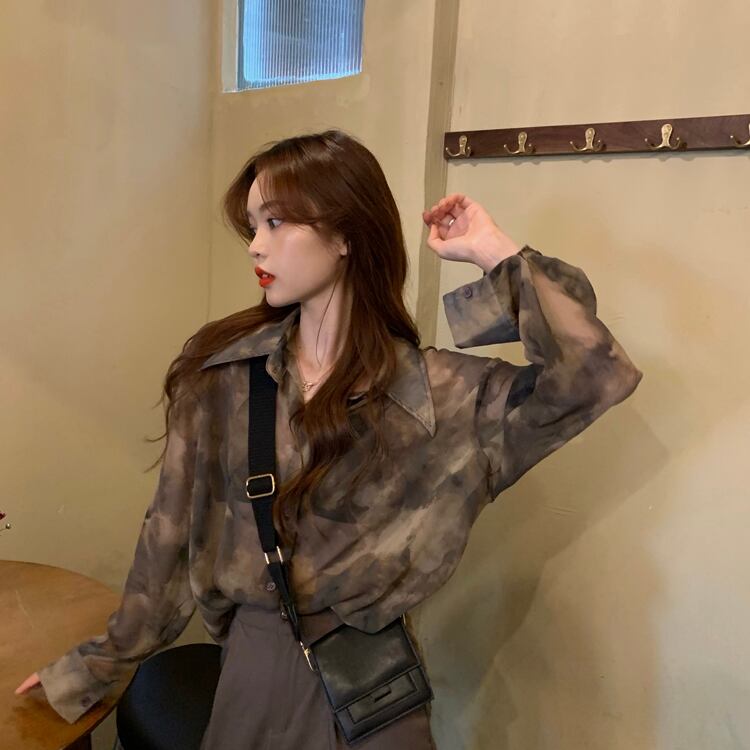 薄手レディーススタンダードスタイルシャツ プリントシフォン ロング レトロ 1号婦人57368975468