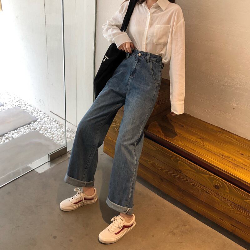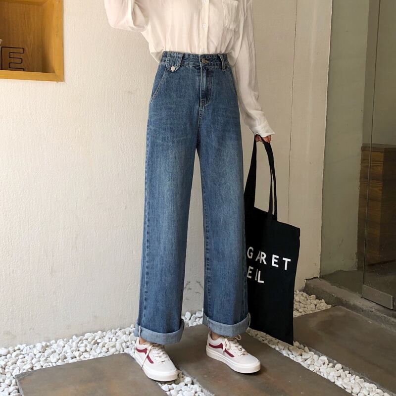 ジーンズ スプリングハイウェストスタンダードスリムパンツ ルーズロング レトロ 春物 1号婦人14735430330