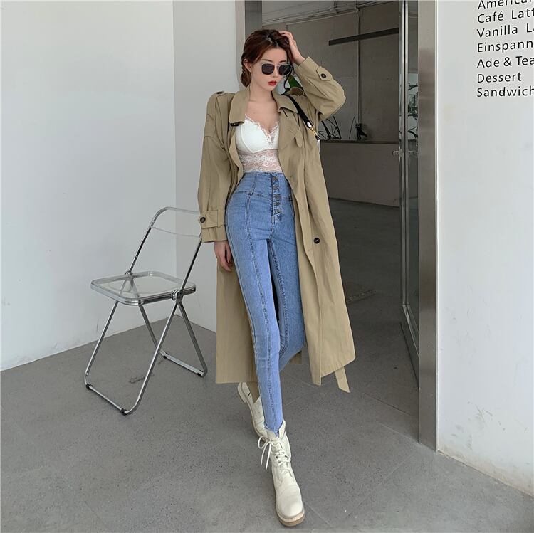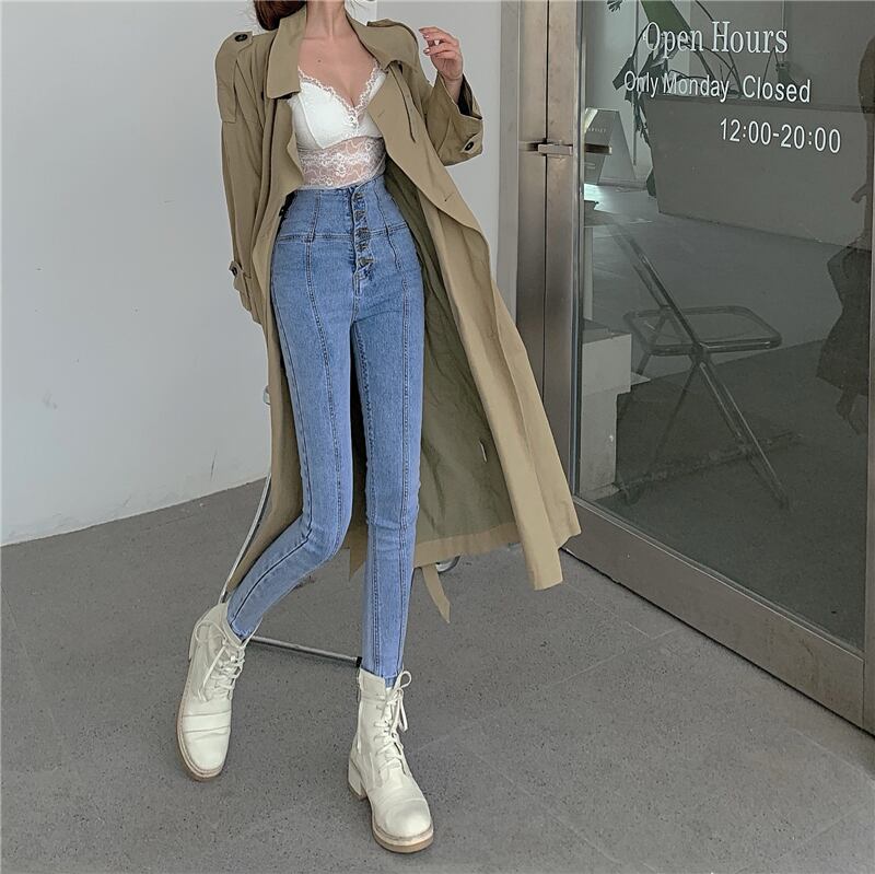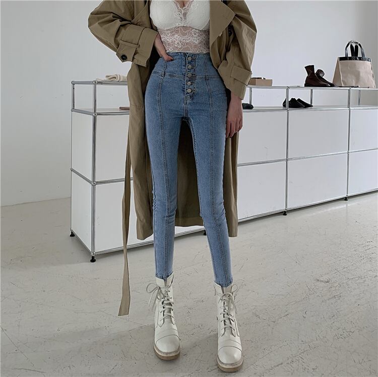 ジーンズ スプリングハイウェストウェストストレッチパンツ エラスティック 伸縮 春物 1号婦人66546510915