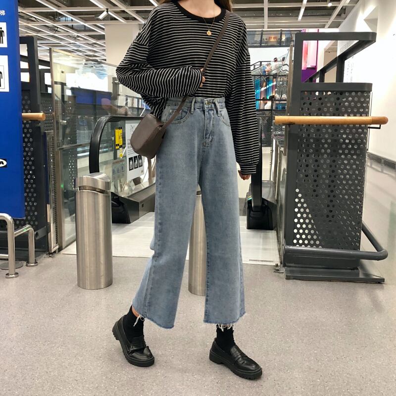 ジーンズ スプリングハイウェスト薄手パンツ ルーズ 春物 1号婦人36699007132