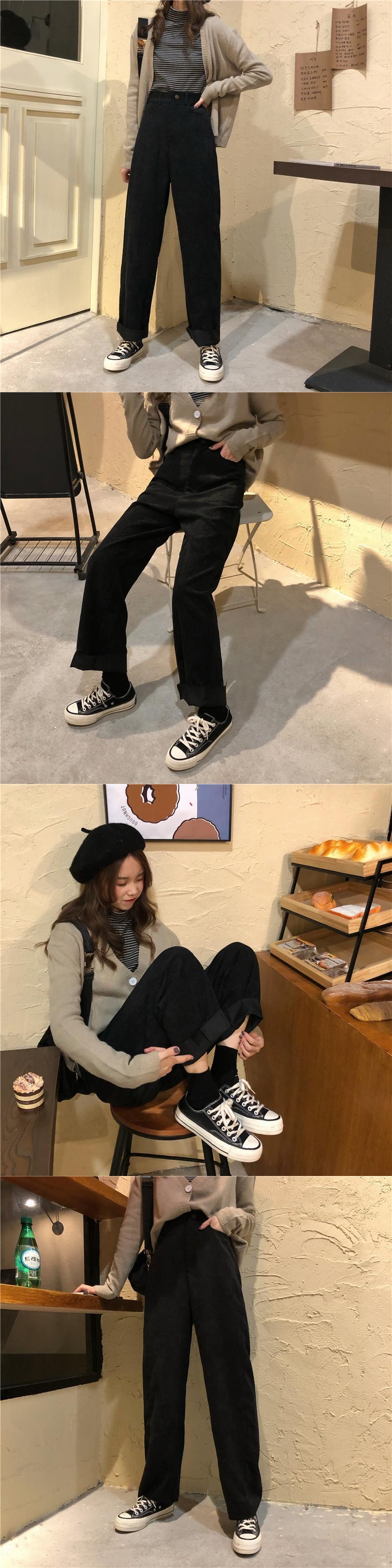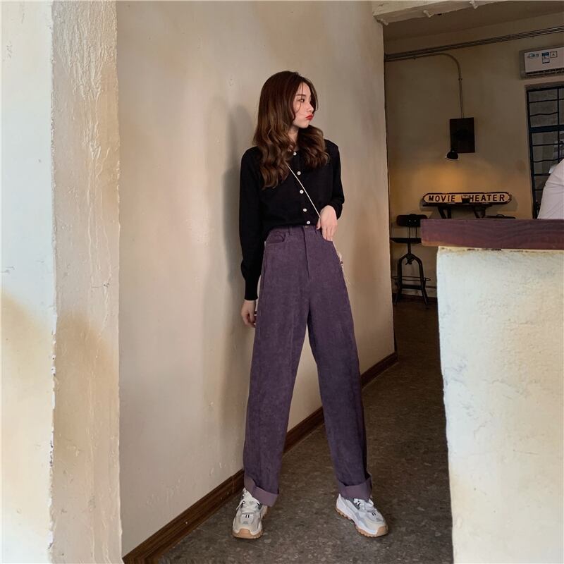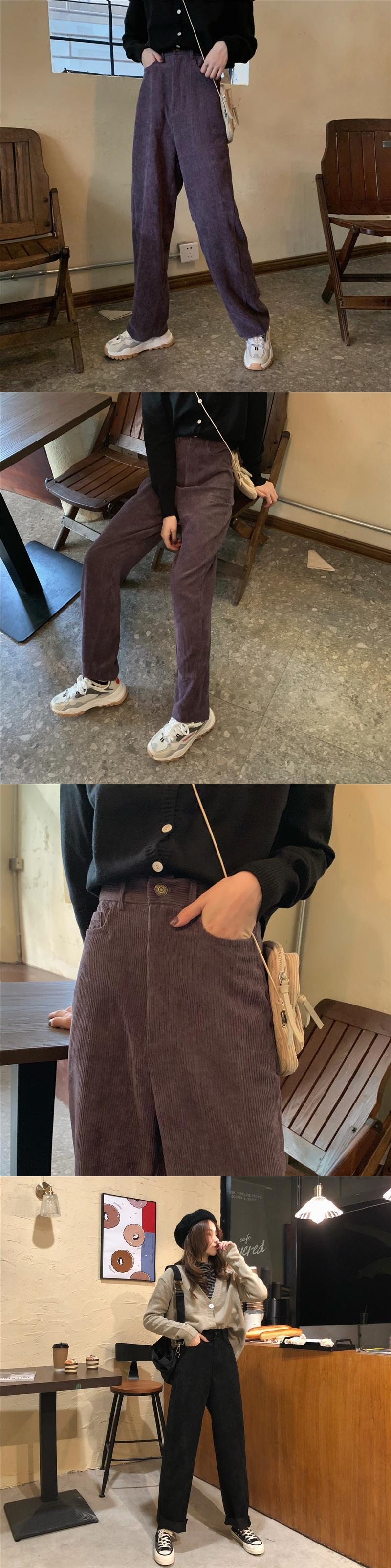 パンツ スプリングオータムハイウェストウェストスリムルーズコーデュロイ 春物 秋物 1号婦人34844634979