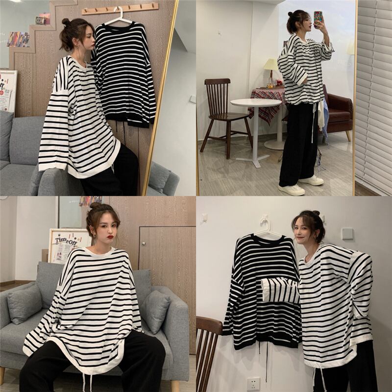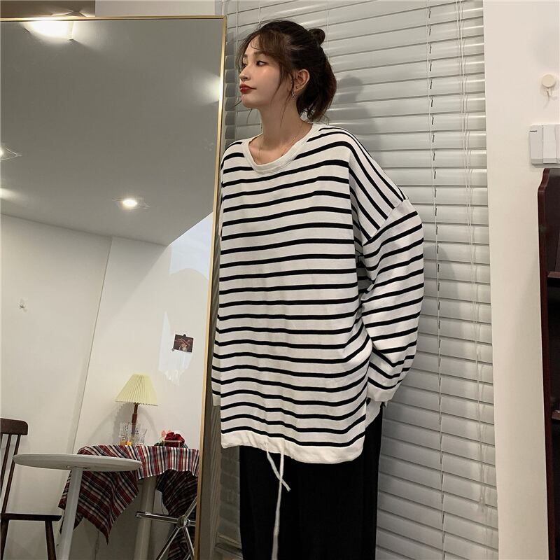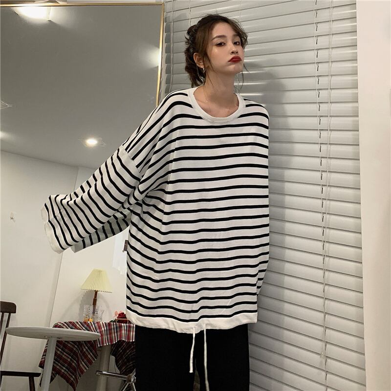 レッドシャツ レディーススプリングオータムスタイルルーズストライプTシャツ トップス ロング 春物 秋物 1号婦人88411488566