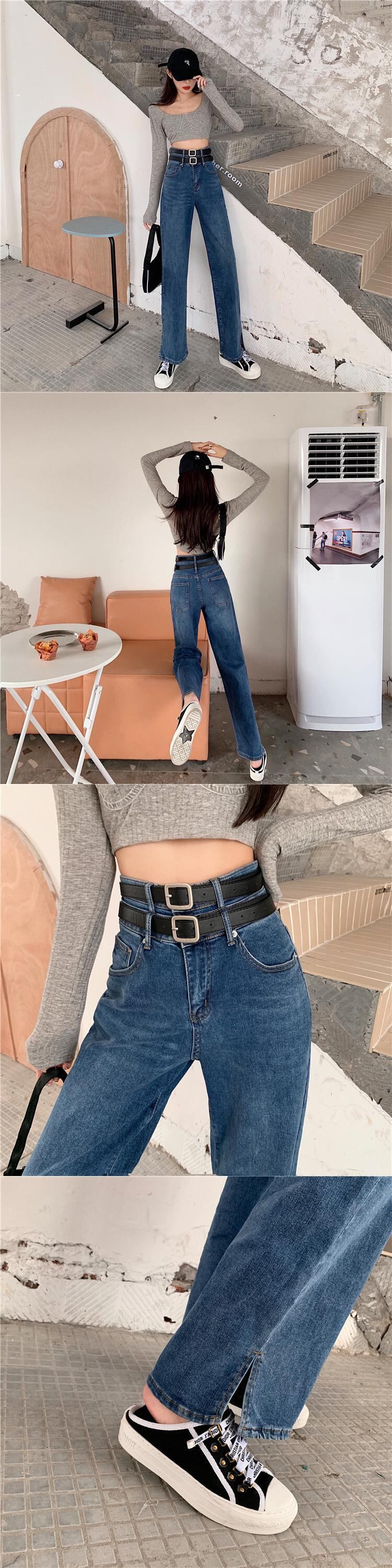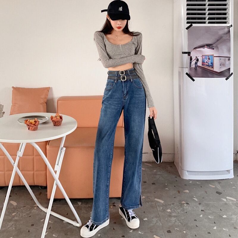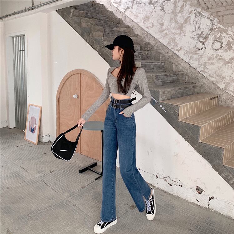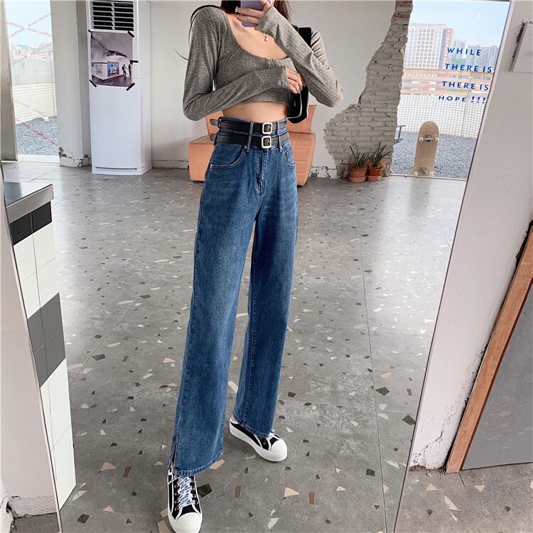 ダブルウェストジーンズ スプリングパンツ ルーズワイドレッグ 春物 ワイドパンツ 1号婦人63997319532