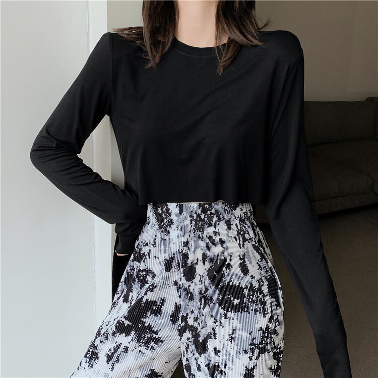 スプリングオータムブラックTシャツ トップス ロング 春物 秋物 1号婦人13293396936
