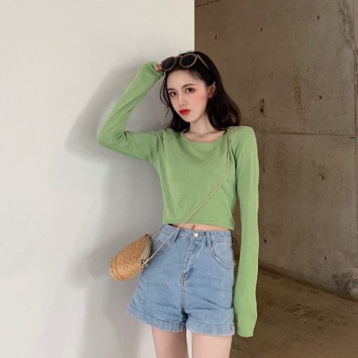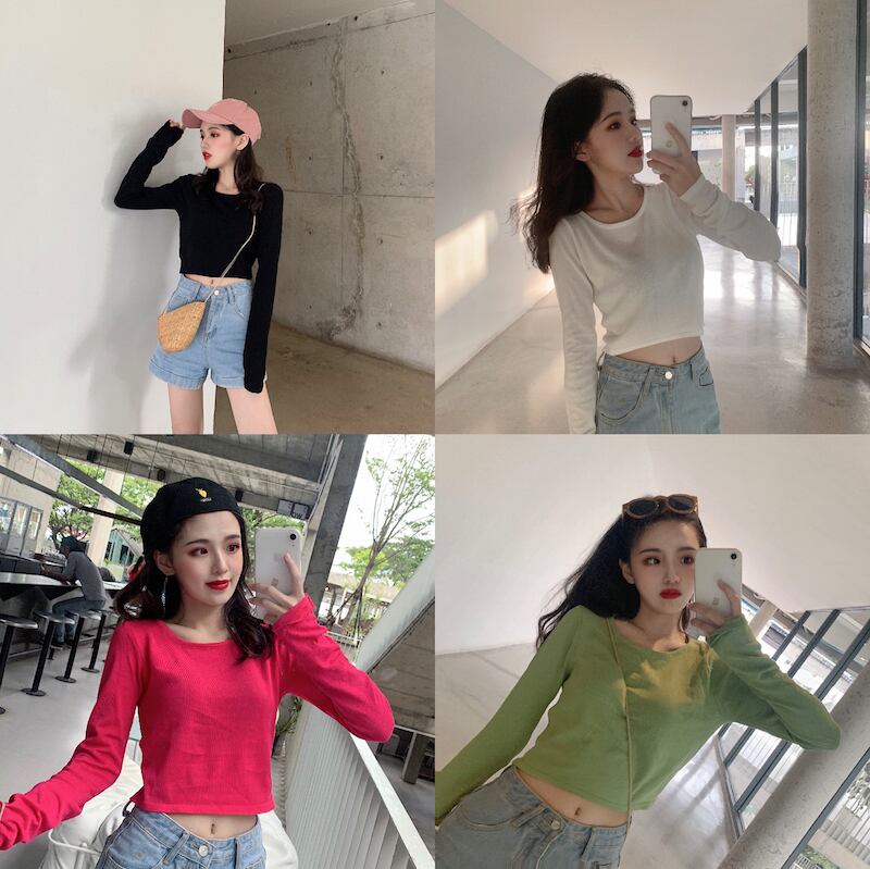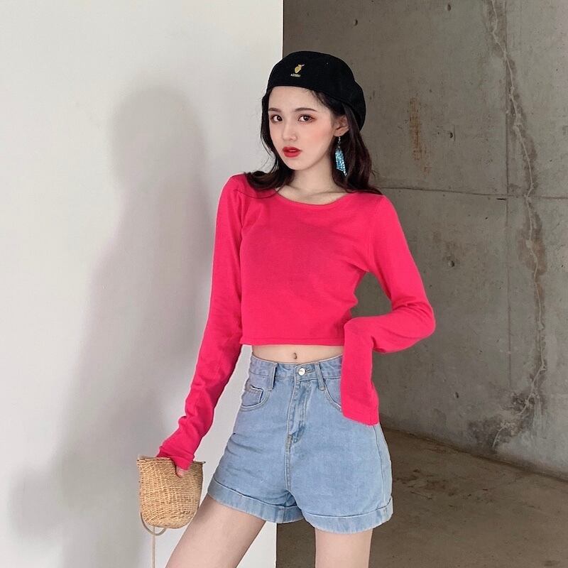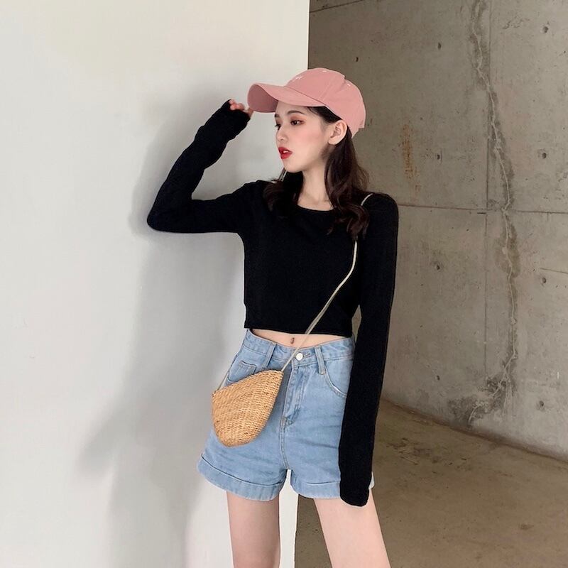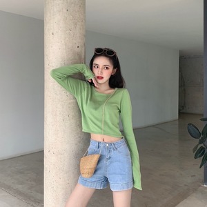 シャツ スプリングオータムスタイルスリム薄手ブラックニットショートトップス 春物 秋物 1号婦人66660649567