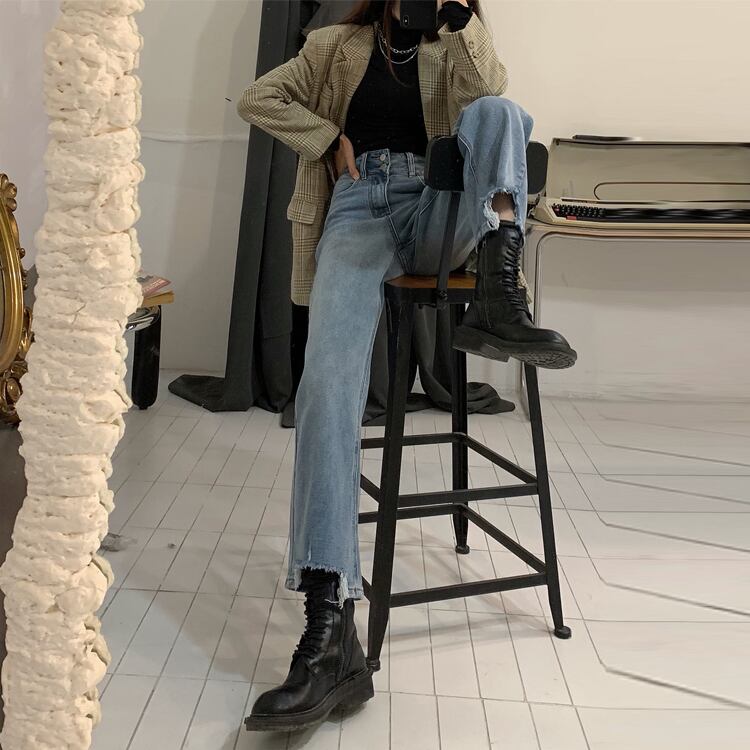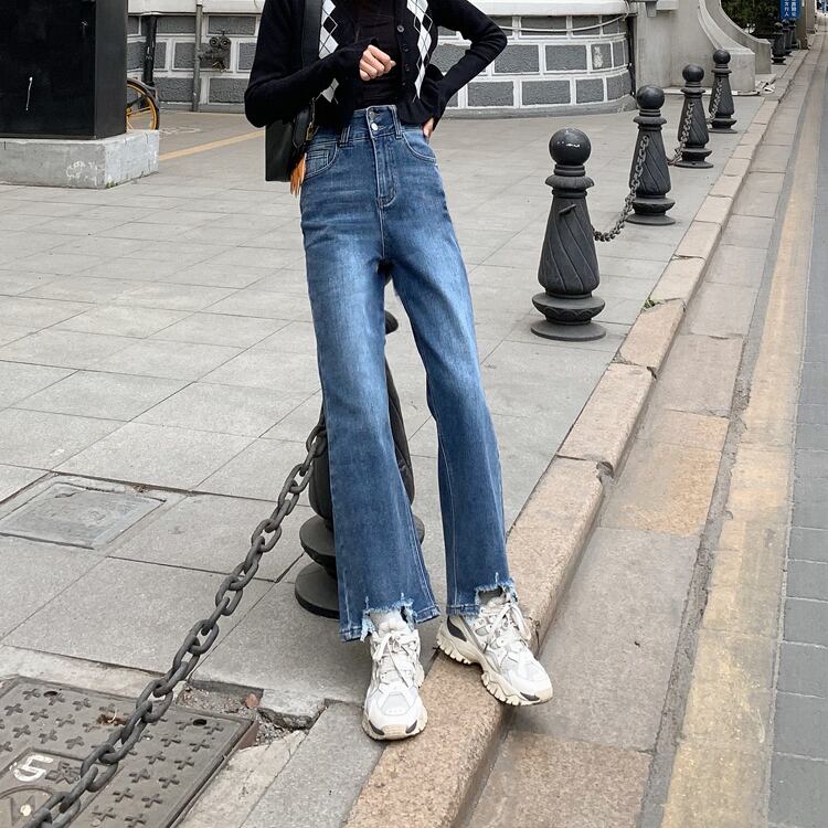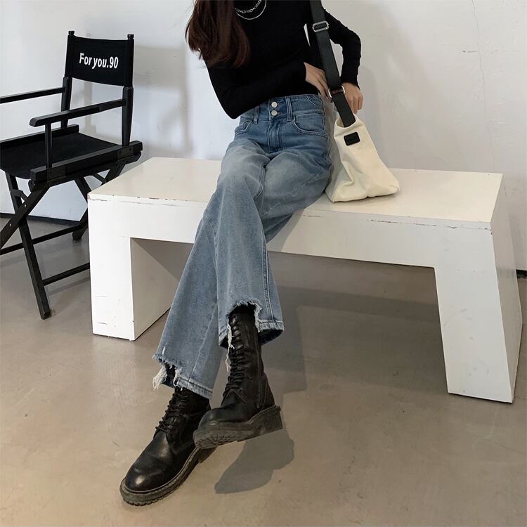 スタンダードジーンズ オータムウィンターハイウェストウェストルーズワイドレッグパンツ ロング レトロ 秋物 冬物 ワイドパンツ 1号婦人26677720794