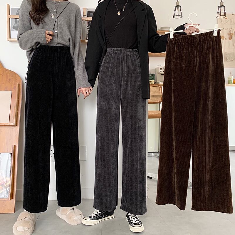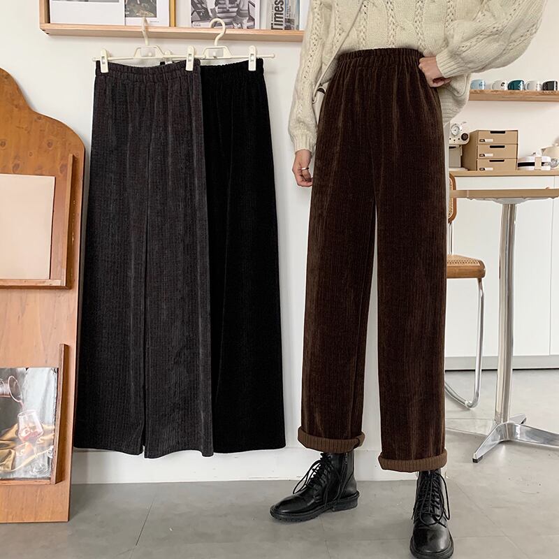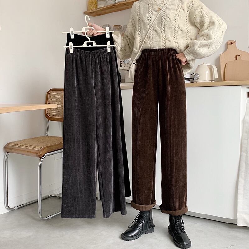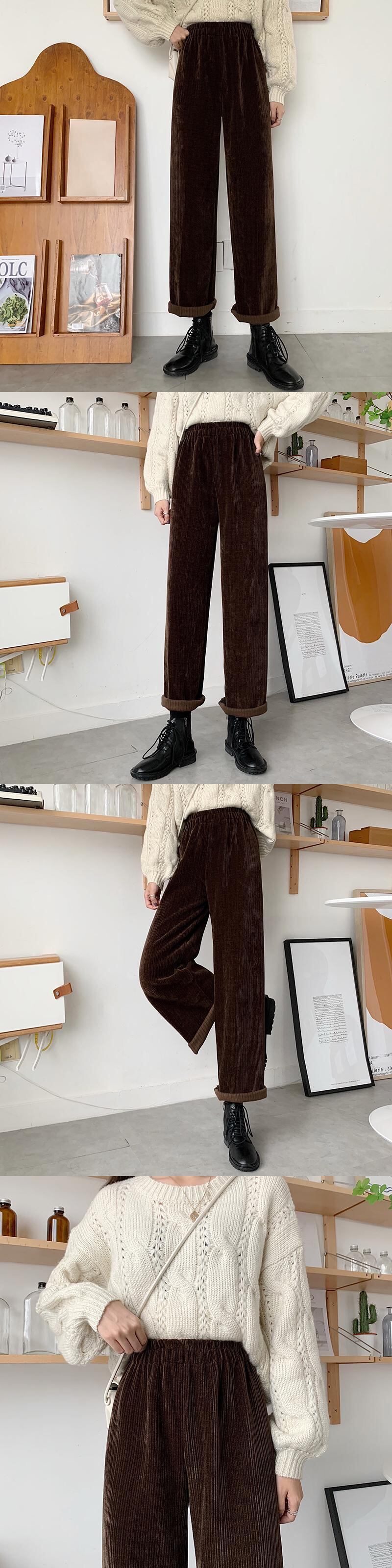 コーデュロイパンツ スプリングオータムハイウェスト薄手カジュアル 春物 秋物 1号婦人30750337366