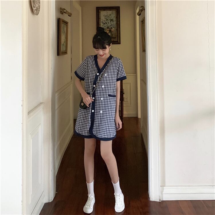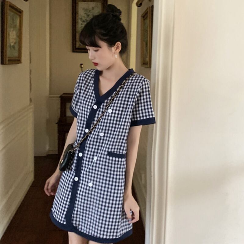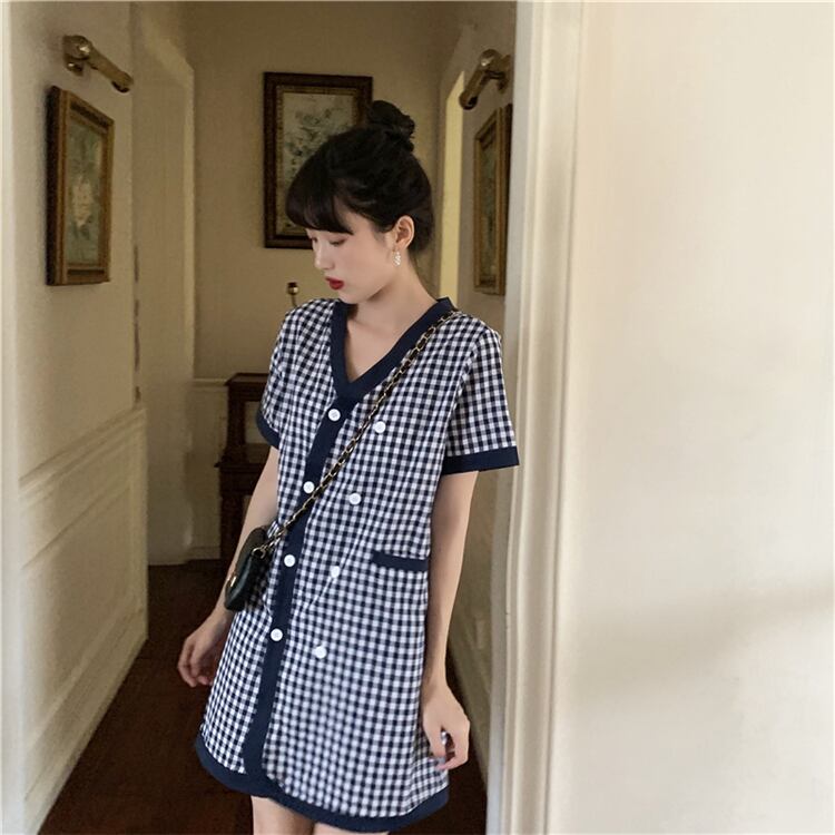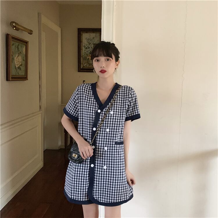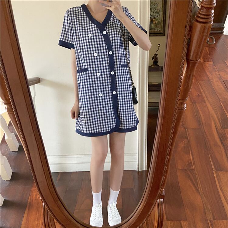 スプリングVネック格子柄ドレス スカート Aライン 春物 1号婦人38952001664