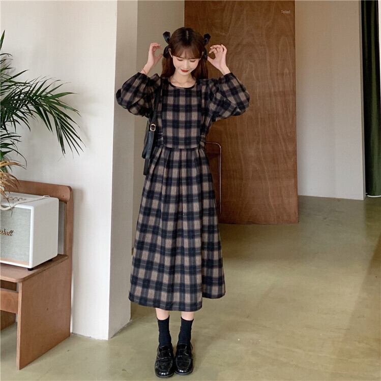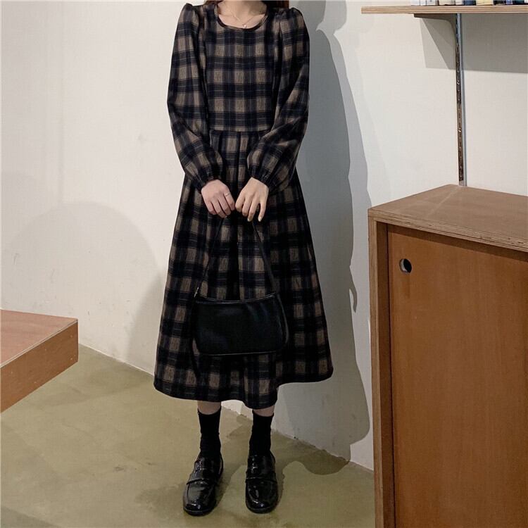 スプリングドレス スタンダードスタイルロングAラインスカート レトロ 春物 1号婦人96274576470