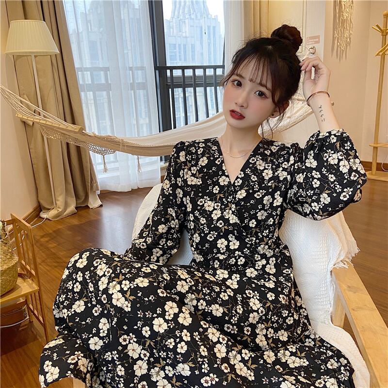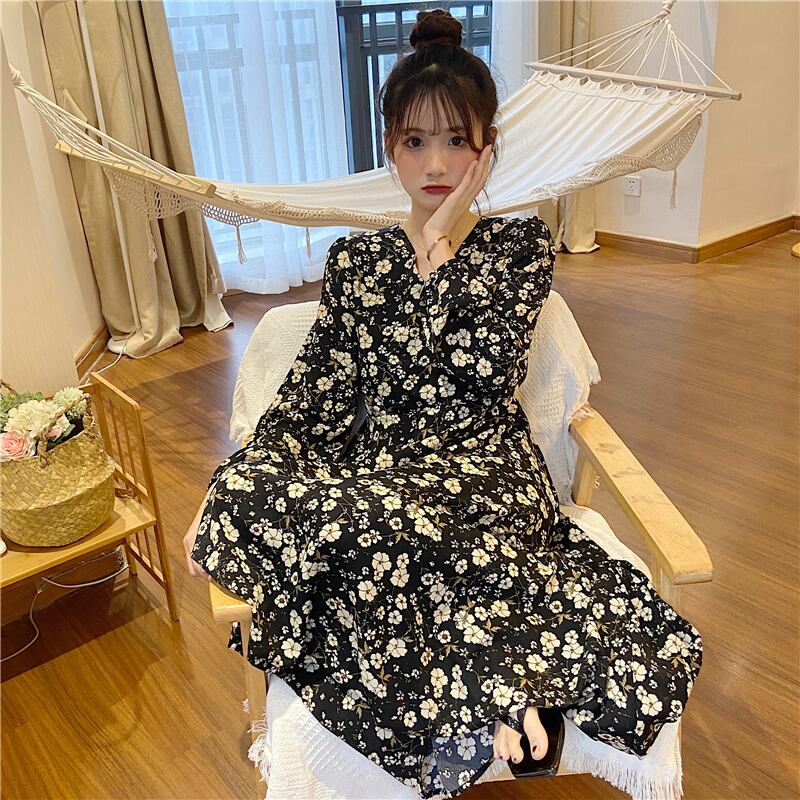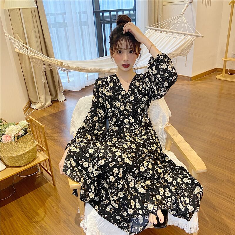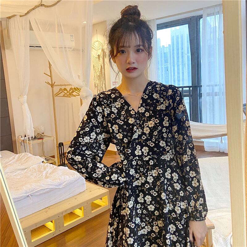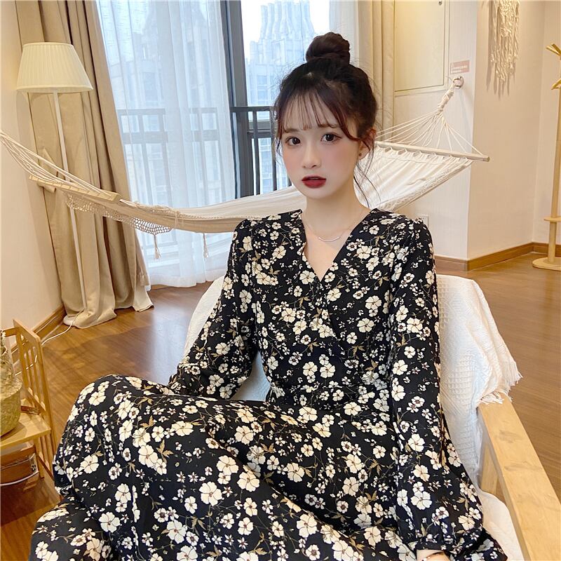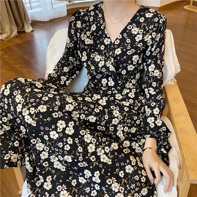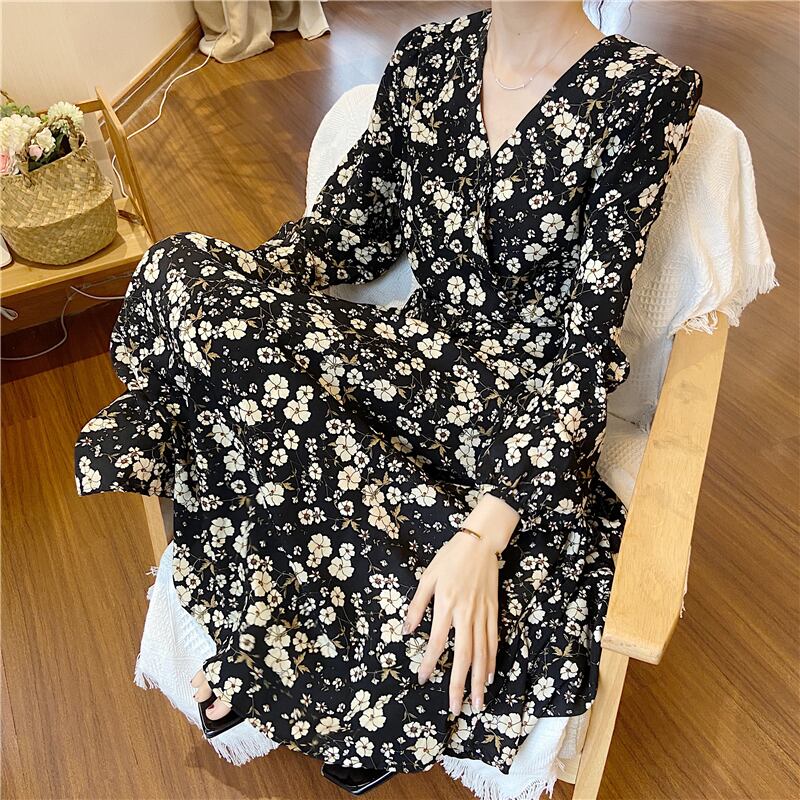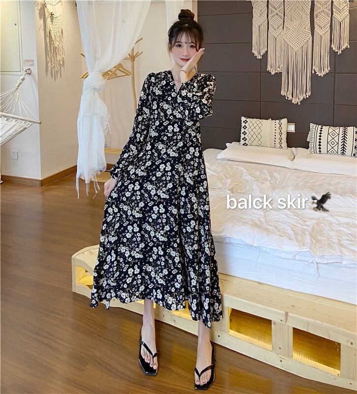 スタンダードVネックフローラルドレス スプリングウェストAラインスカート レトロ 春物 花柄 1号婦人31420691513