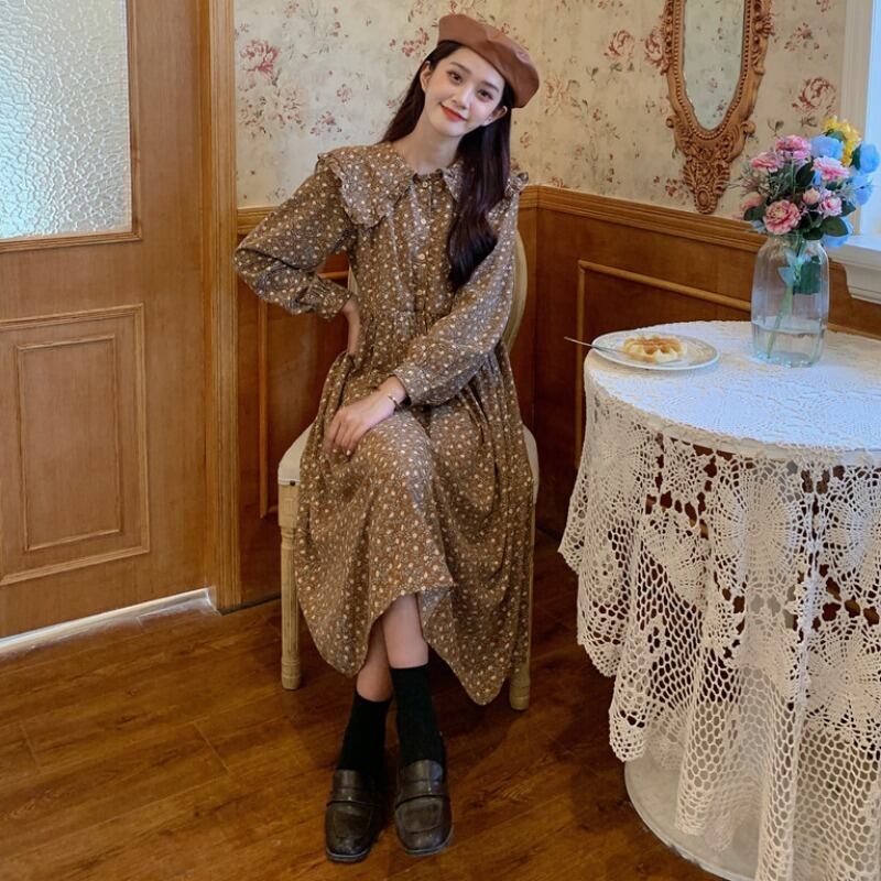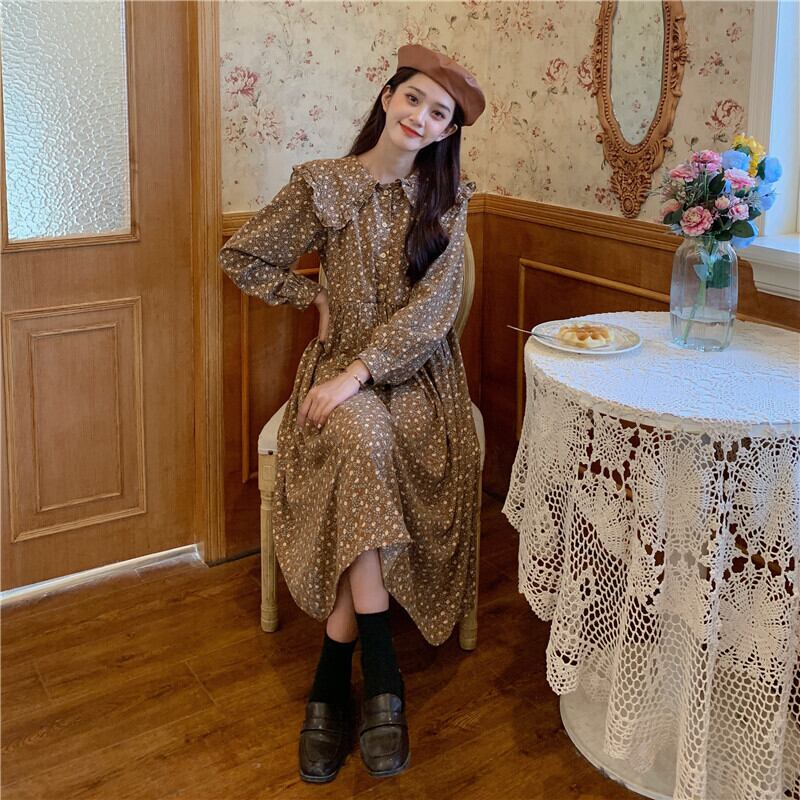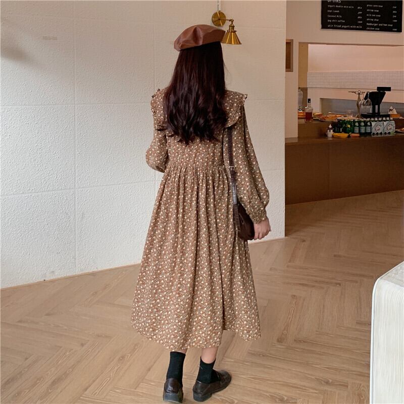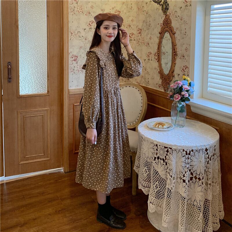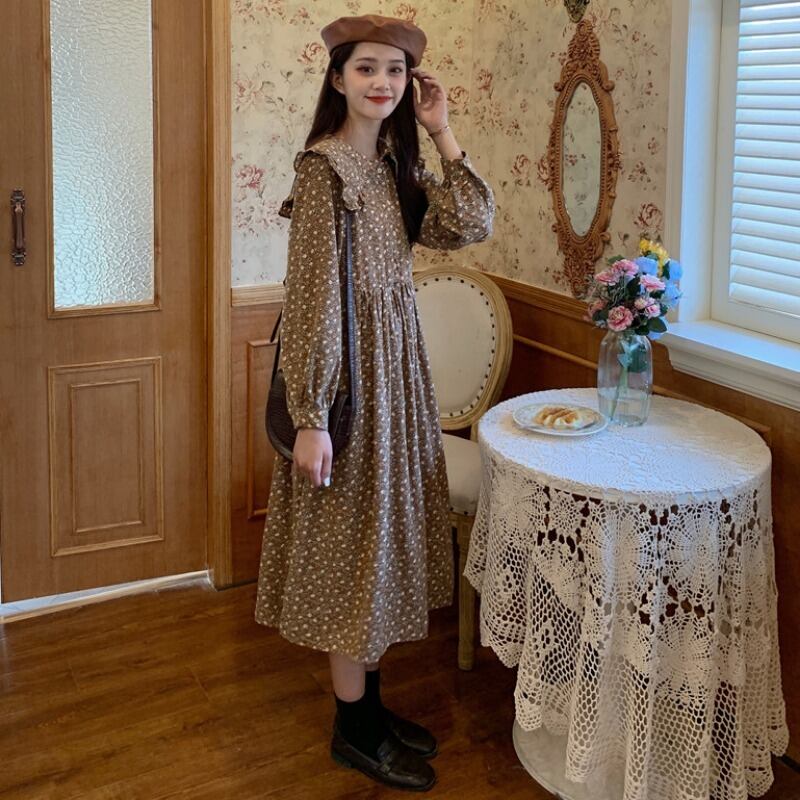 スプリングフローラルドレス スタンダードカラーAラインスカート ロング レトロ 春物 花柄 1号婦人87522449132