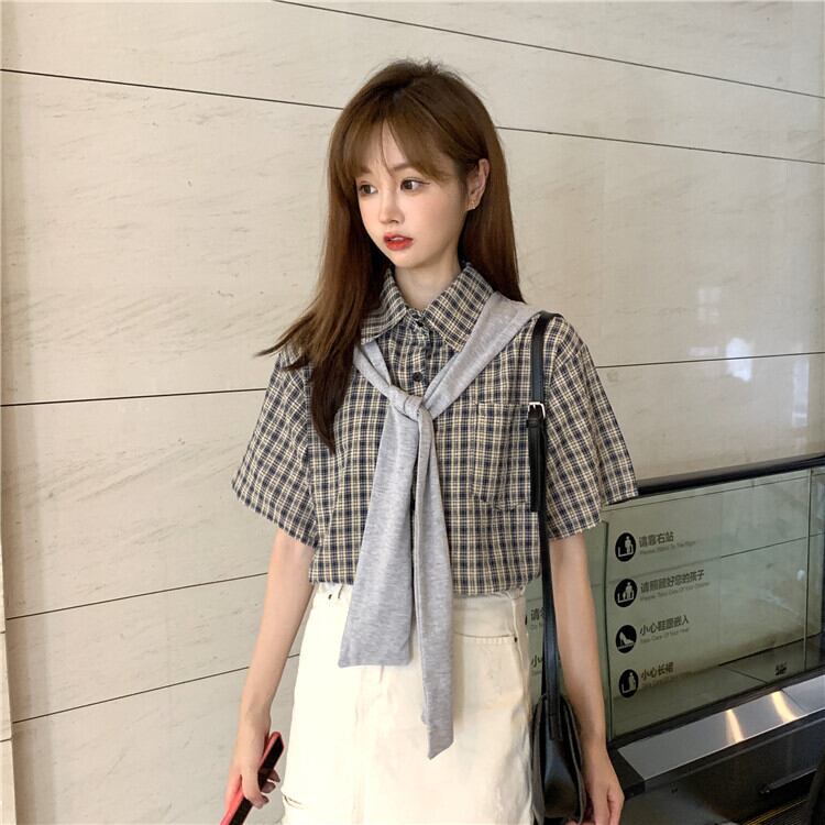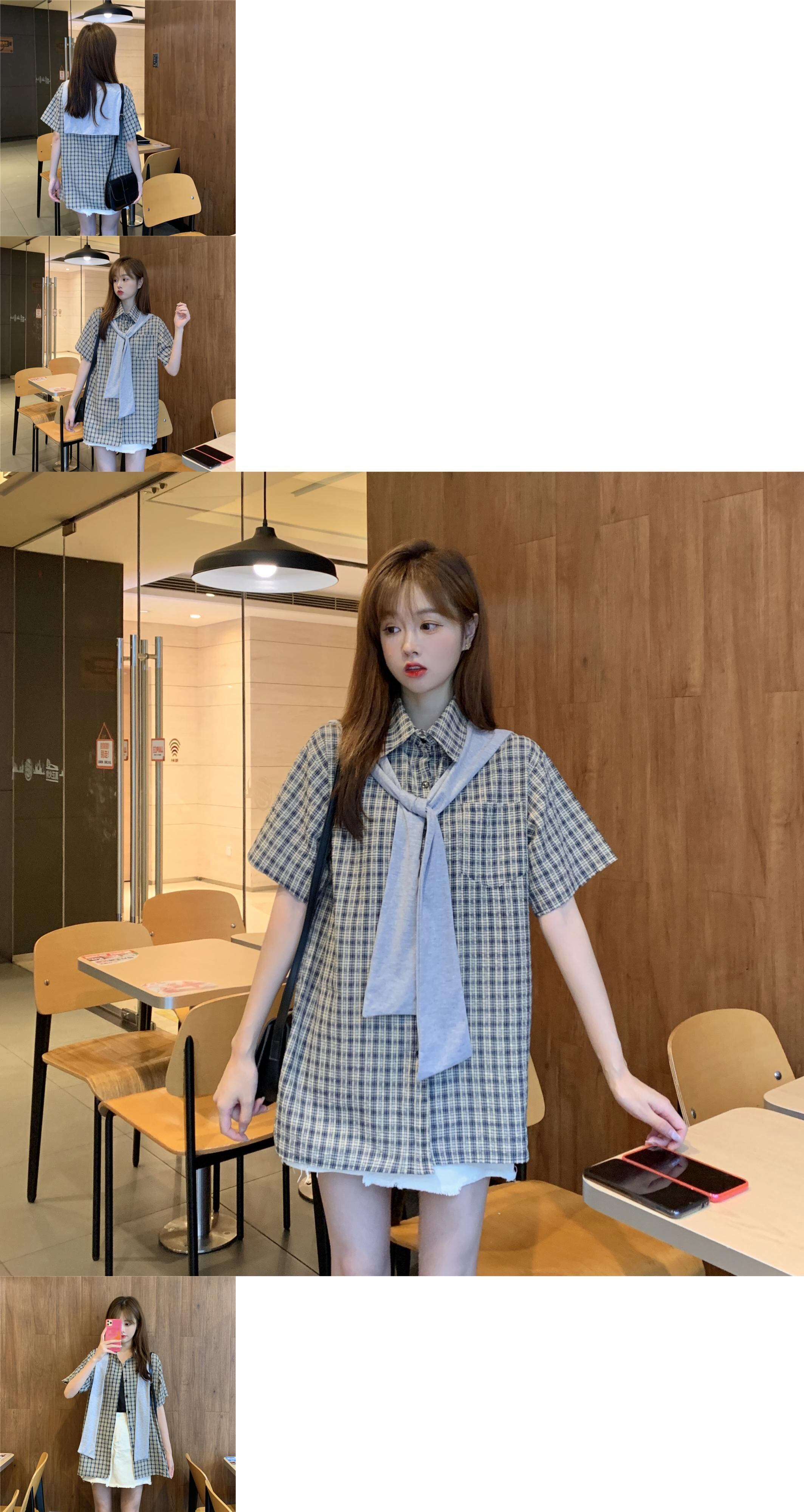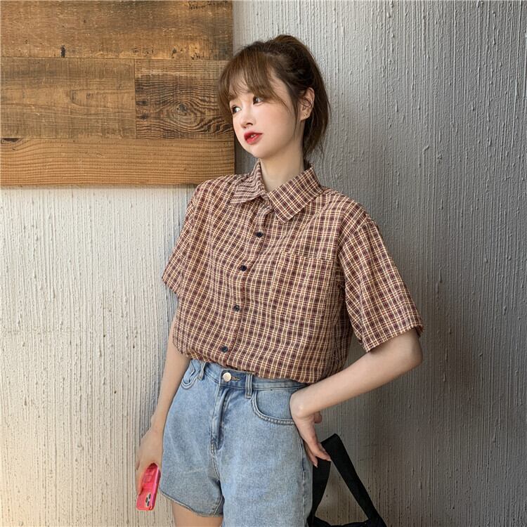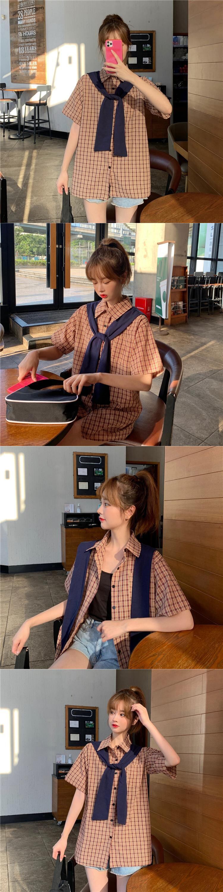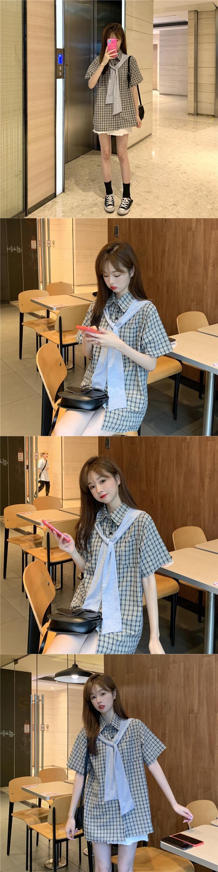 シャツ スプリングスタンダード格子柄トップス ロング レトロ 春物 1号婦人83911104318