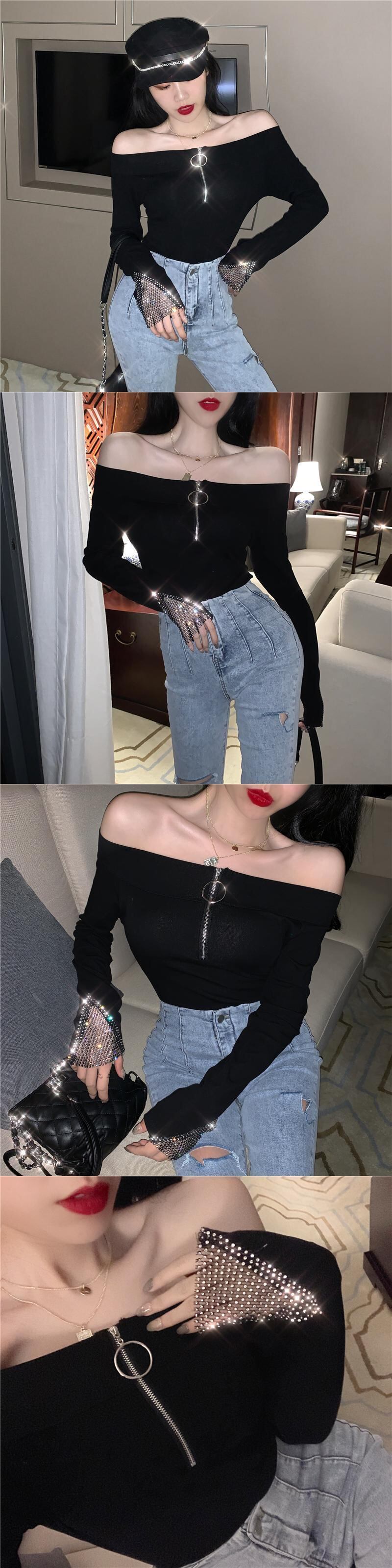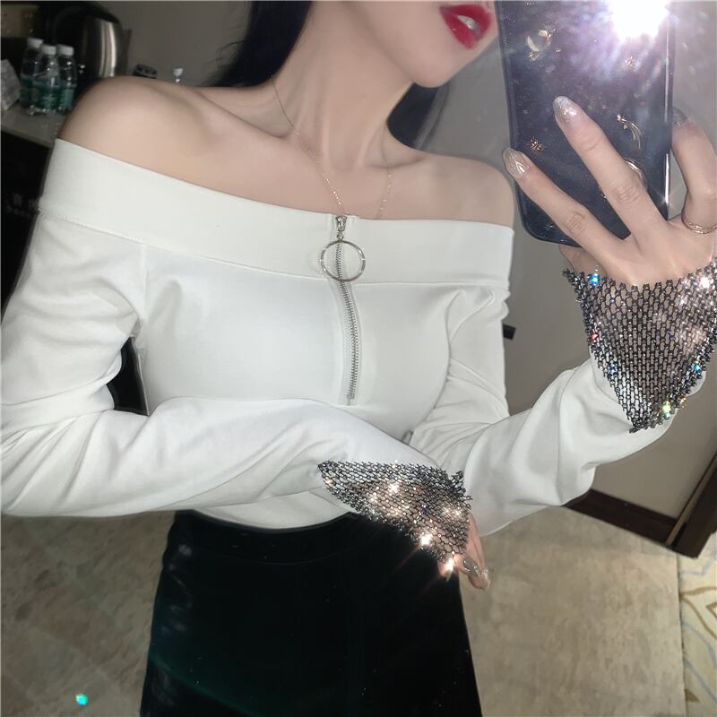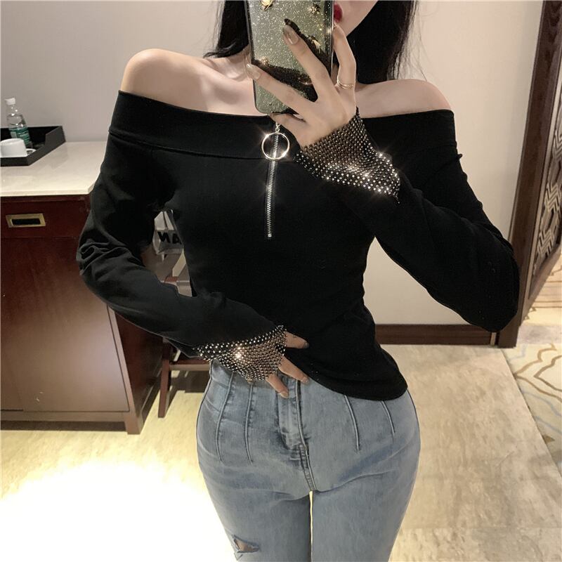ジッパーシャツ スプリングオータムスタイル長袖スリーブTシャツ トップス ロング 春物 秋物 1号婦人90862744459