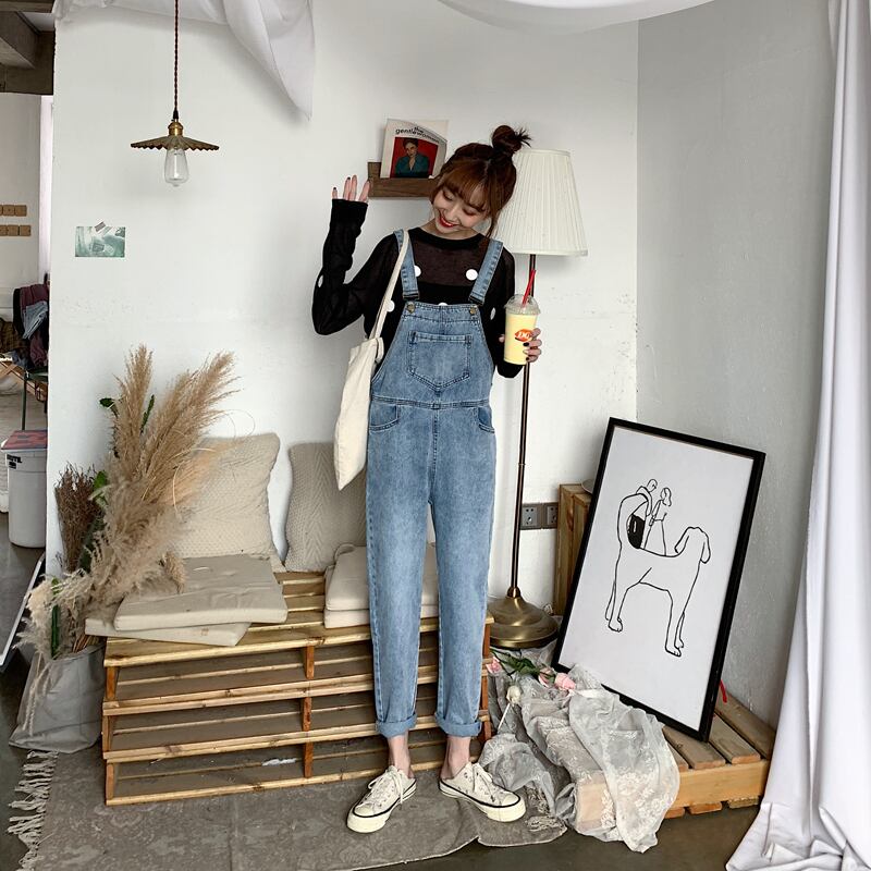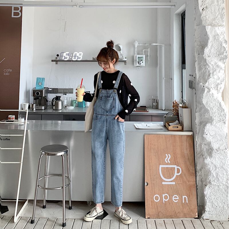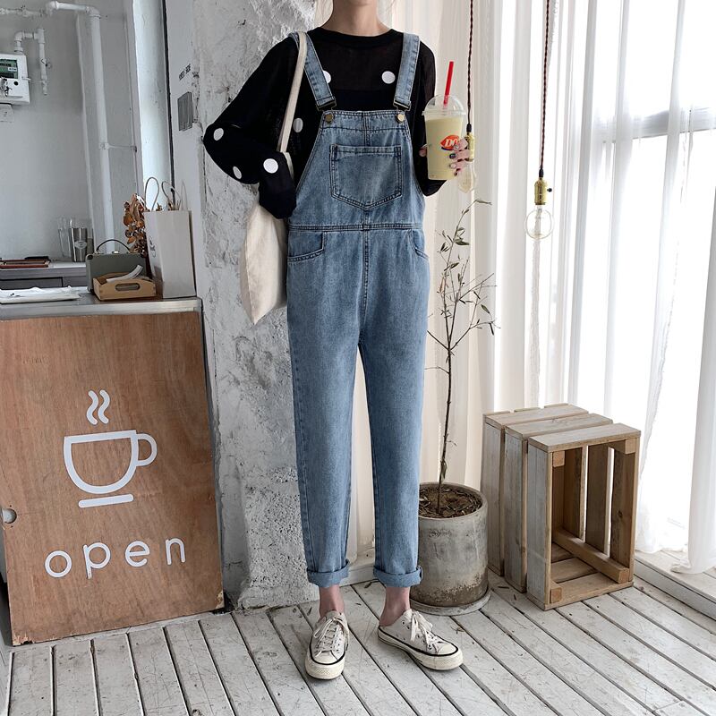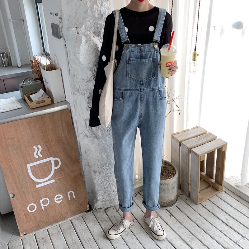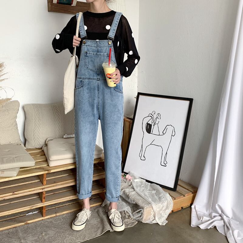 ジーンズ スプリングオータムルーズオーバーオール 薄手ハイウェストウェストロングパンツ 春物 秋物 1号婦人79598246252