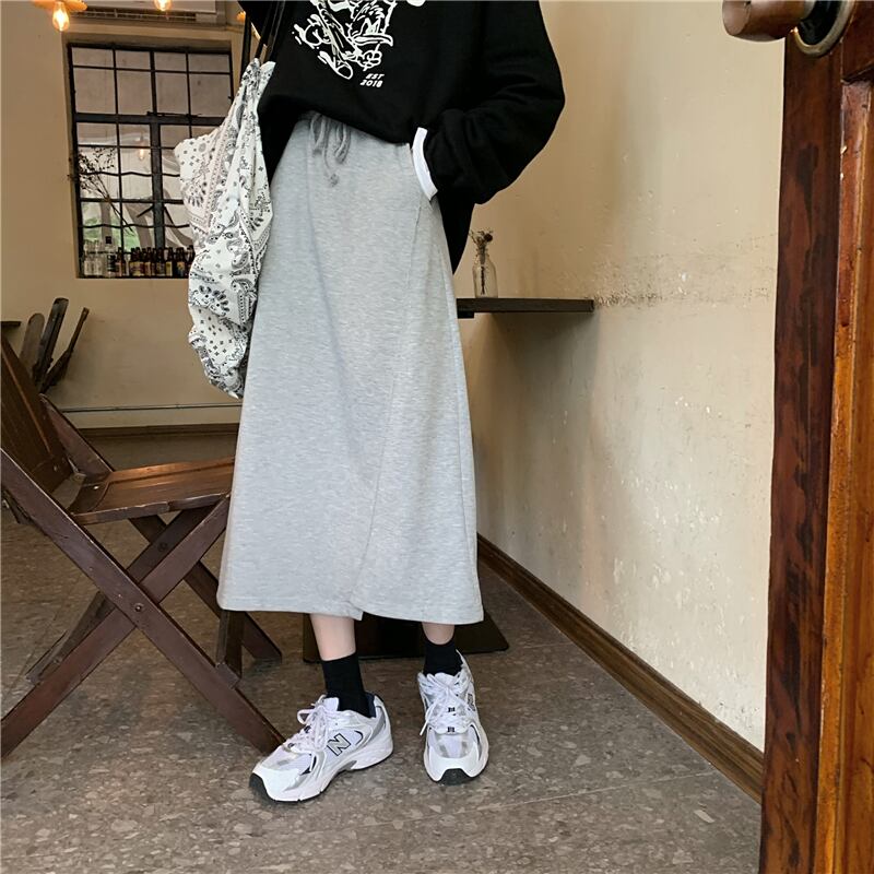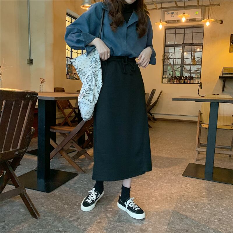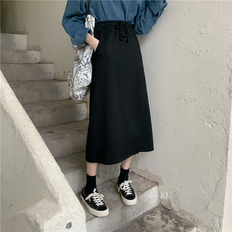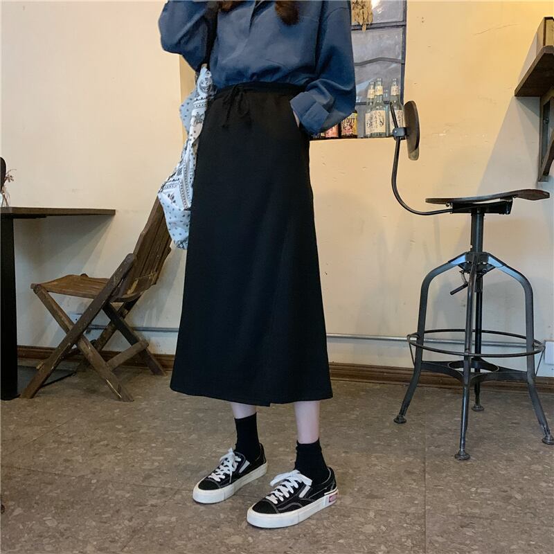 ブラックスカート Aラインスプリングオータムハイウェストウェスト薄手 春物 秋物 1号婦人26689446312