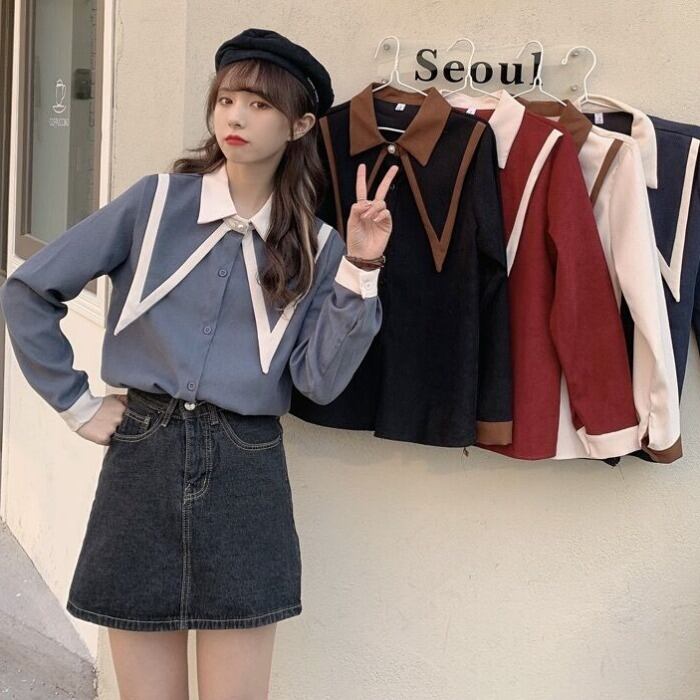 コーデュロイカラーシャツ スプリング長袖スリーブトップス ロング 春物 1号婦人57644244427
