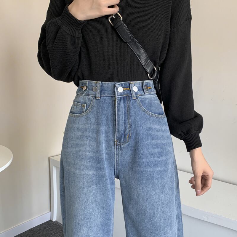 ジーンズ スプリングハイウェストウェストパンツ ルーズ 春物 アジャスタブル 1号婦人59307007530