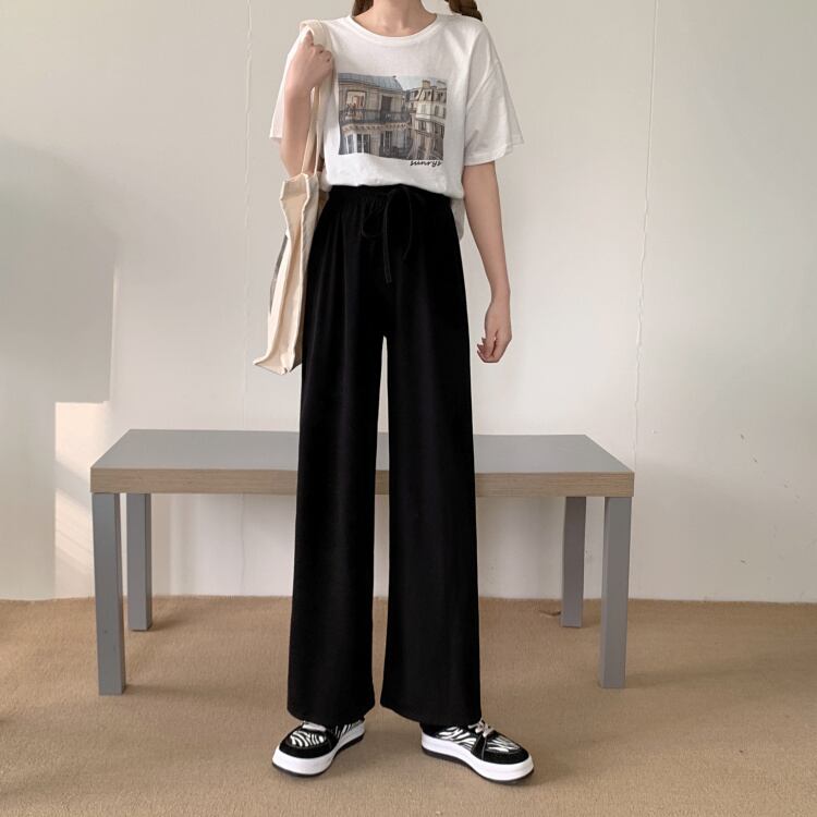 パンツ スプリングオータムハイウェストスリムルーズカジュアル 春物 秋物 1号婦人1854070359